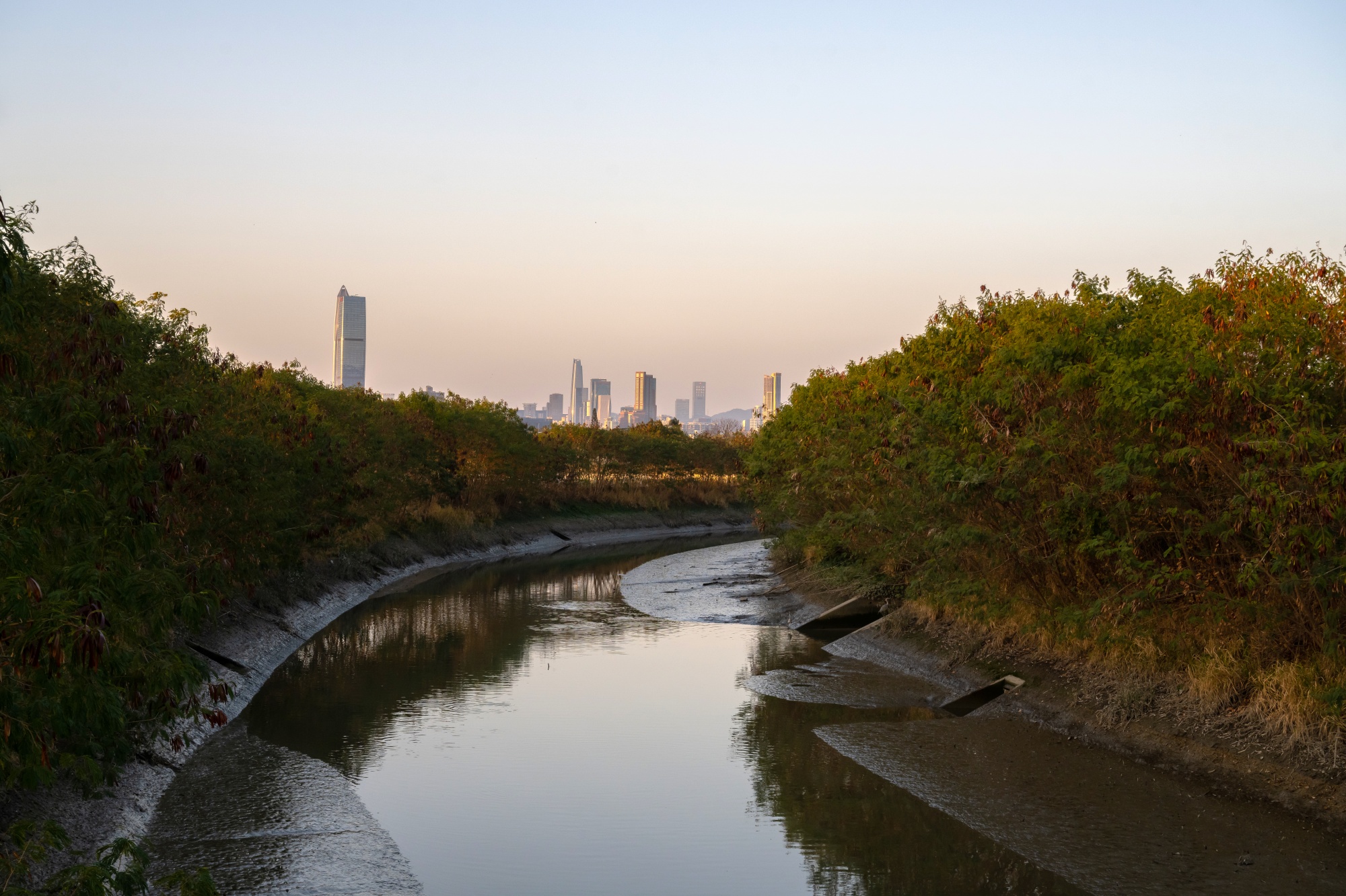 深圳边境附近的天水围排水渠。香港没有比新界西北边更容易受到影响的地区。摄影师:Billy H.C. Kwok/Bloomberg然而,排水部门因对气候影响过于乐观而受到批评。该部门对海平面上升的预测仅为0.23米,从2041年到2060年,而香港天文台的最佳预测则是可能增加到这个水平的两倍。
