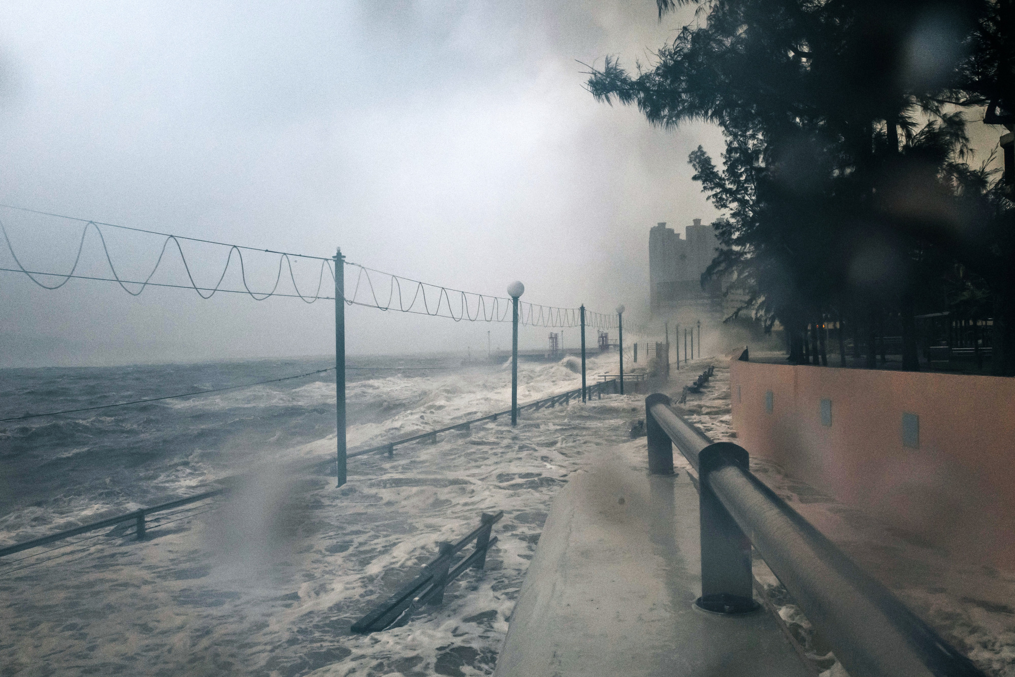 2018年9月,台风山竹引发的风暴潮袭击了恒发邨住宅区的海滨长廊。摄影师:Anthony Kwan/彭博社### 红旗