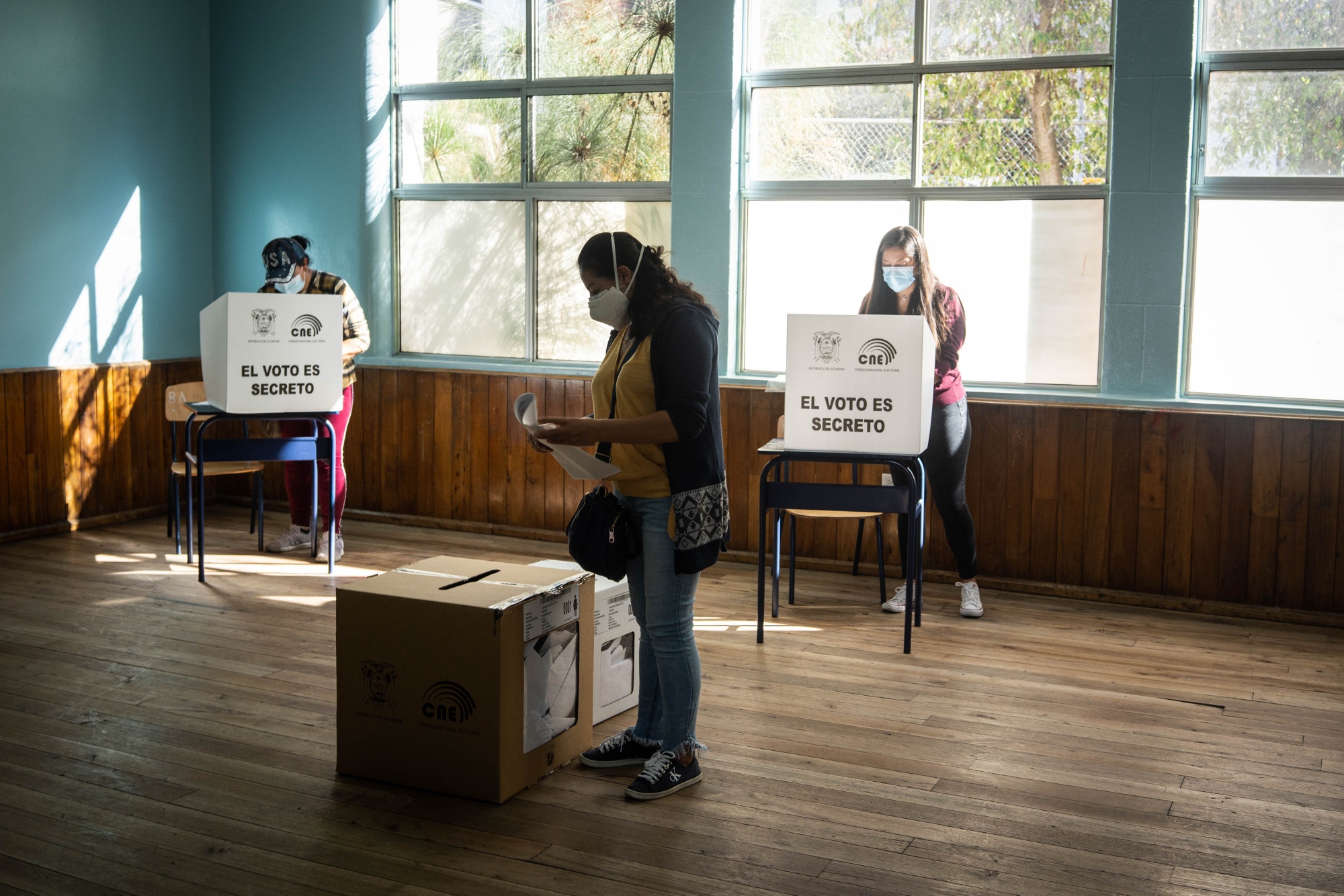 官员们在厄瓜多尔基多的一个投票站收集选票,这是2月7日总统选举第一轮。摄影师:Johis Alarcon/Bloomberg在厄瓜多尔,一位社会主义经济学家赢得了周日总统选举第一轮,他拒绝了国际货币基金组织要求的财政紧缩。安德烈斯·阿劳斯将在4月11日的决选中面对印第安人党帕查库蒂克的雅库·佩雷斯或银行家吉列尔莫·拉索。