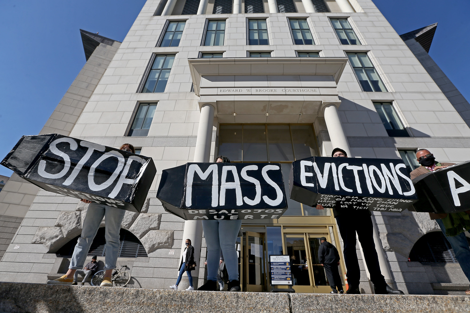 抗议者在波士顿集会,阻止麻萨诸塞州的驱逐。摄影师:MediaNews Group/Boston Herald vi/MediaNews Group RM喜欢获取晚间简报?订阅Bloomberg.com,获取可信赖的、数据驱动的新闻,从独家订阅者专属通讯中获得专家分析。