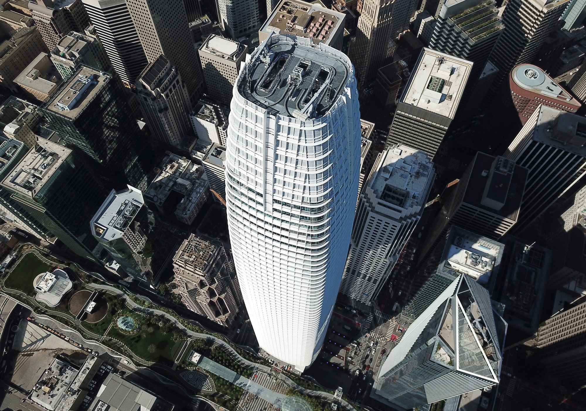 2019年,从上方俯瞰旧金山市中心的Salesforce Tower。