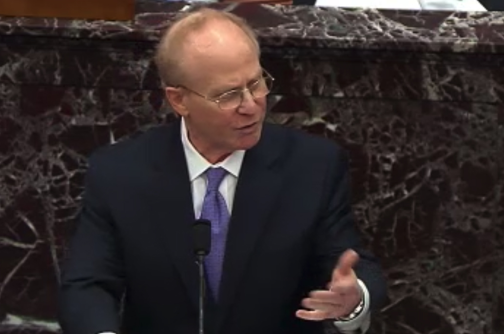 大卫·肖恩,唐纳德·特朗普的辩护律师,在2月12日在参议院大厅发言。