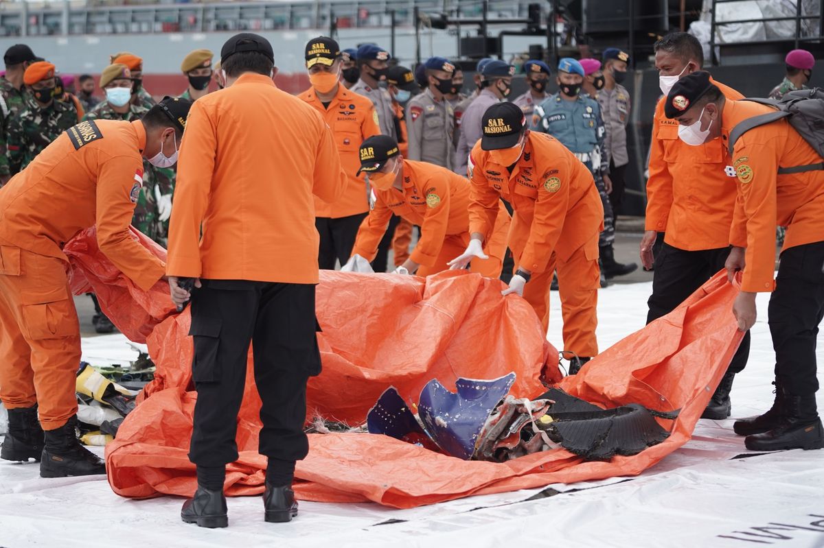 搜索和救援队员在雅加达的丹戎普里奥克港码头上搬运从SJ182坠机现场找到的残骸,日期为1月10日。摄影师:Dimas Ardian/Bloomberg### 明天你需要知道的事情