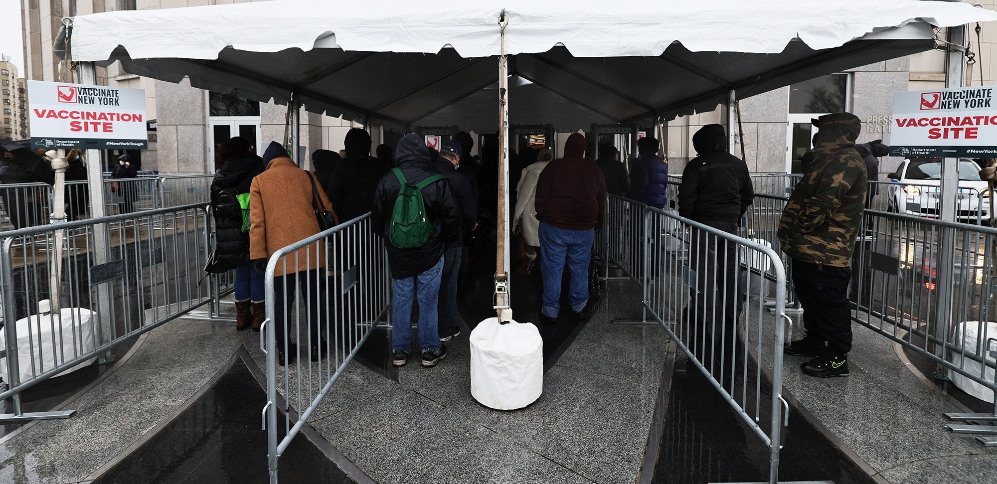 等待进入洋基体育场冠状病毒(COVID-19)疫苗接种点的人们,日期为2月5日。摄影师:Michael M. Santiago/Getty Images### 您应该阅读的内容