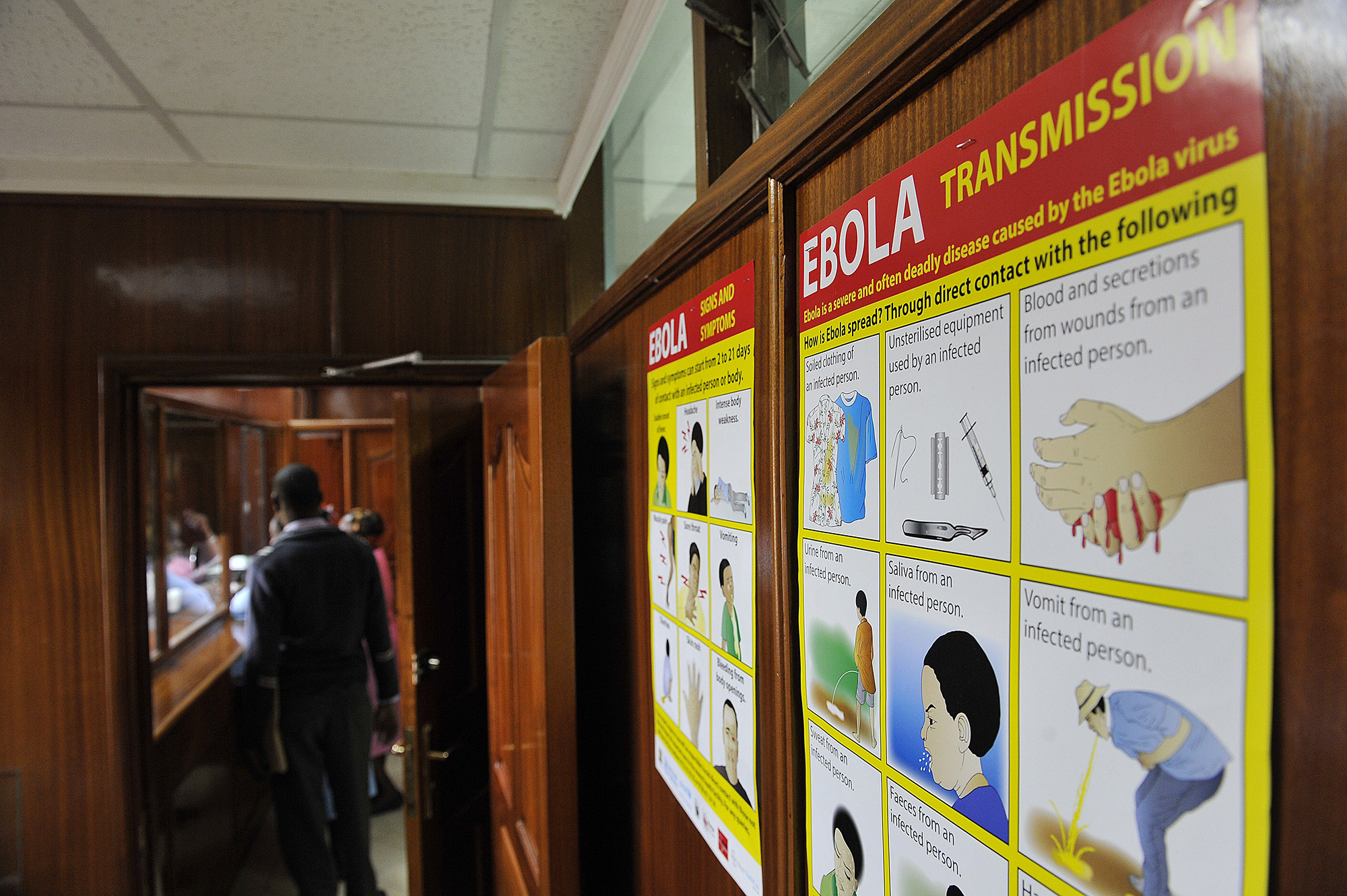 一张埃博拉预防海报放置在几内亚Wankifong的治疗中心外。摄影师:彭博社/彭博社然而,也有希望的迹象。