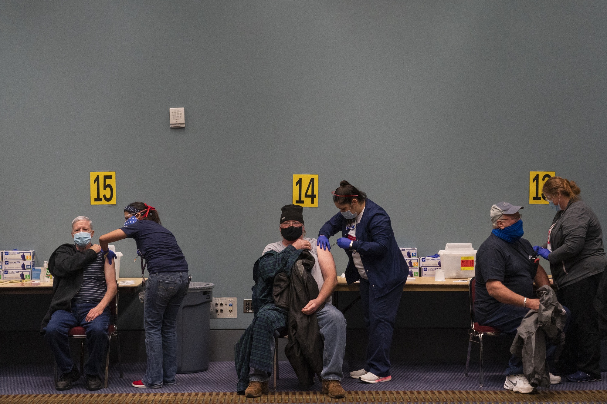 人们在德克萨斯州科珀斯克里斯蒂接种Moderna Covid-19疫苗。