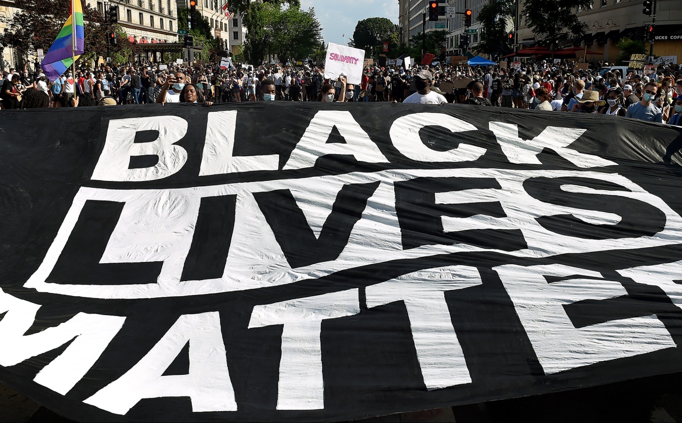 示威者在2020年6月6日在华盛顿特区举行示威活动时,在白宫附近展示“黑人的命也是命”横幅。摄影师:Olivier Douliery/AFP/Getty Images本周的头条新闻: