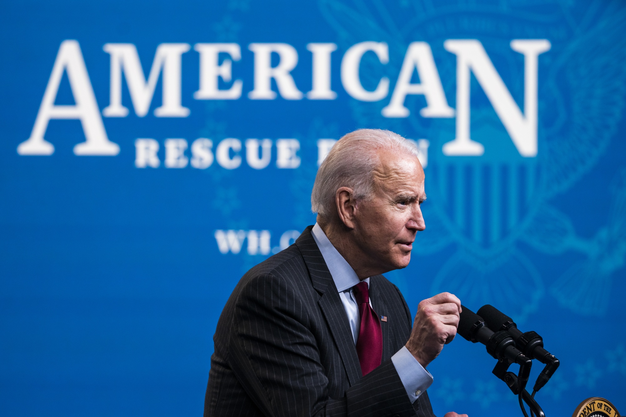 美国总统乔·拜登2月22日在华盛顿特区讲话,呼吁支持他的疫情救助方案。