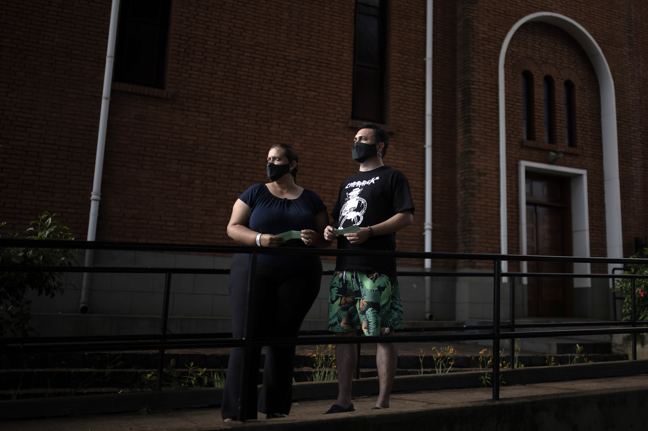 亨利克和维维安妮·费雷拉,塞拉纳居民,参与了巴坦坦研究所关于大规模疫苗接种的研究。摄影师:乔恩·罗里兹/彭博社