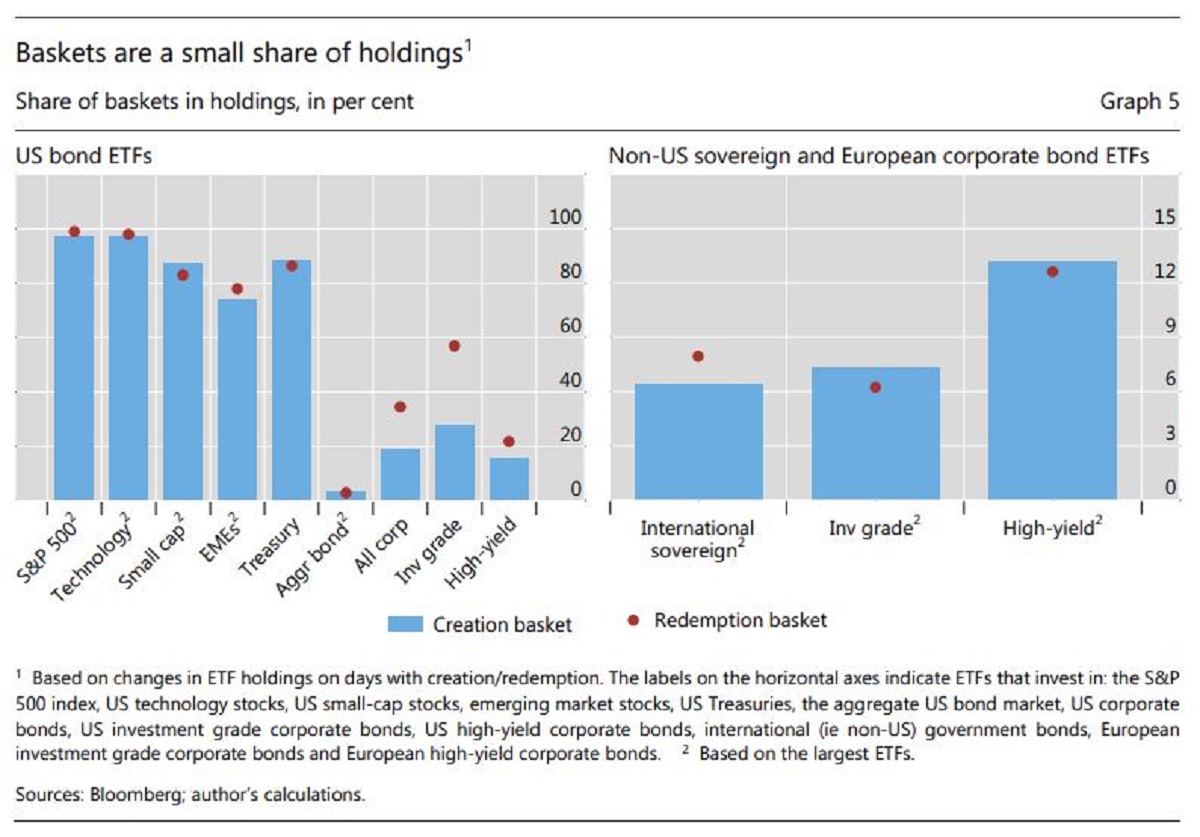 要充分理解这一裁决,让我们快速回顾一下ETF的运作方式。当现金流入ETF时,授权参与者购买基金的基础证券(在这种情况下是债券),并将它们与发行人交换成ETF的股份。当ETF遭受赎回时,这个过程发生相反。例如,如果一个ETF的交易价格低于其持有的债务,授权参与者将购买ETF的股份以换取基础债券(赎回篮子)进行出售 —— 最终保持ETF的价格与其持有的资产保持一致。值得注意的是,国际清算银行指出,ETF发行人可以自行决定将哪些债券包括在赎回篮子中。