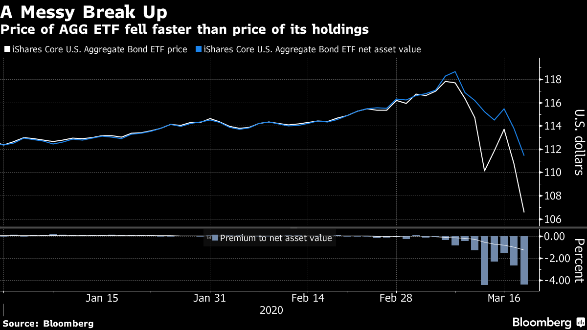 托多罗夫继续说,这是一件好事:通过降低赎回份额的吸引力,发行人可以使ETF的大规模退出变得不太可能--潜在地 限制 更广泛的市场溢出。这让去年三月一些世界最大债券ETF出现的惊人 折扣 变得更有意义。