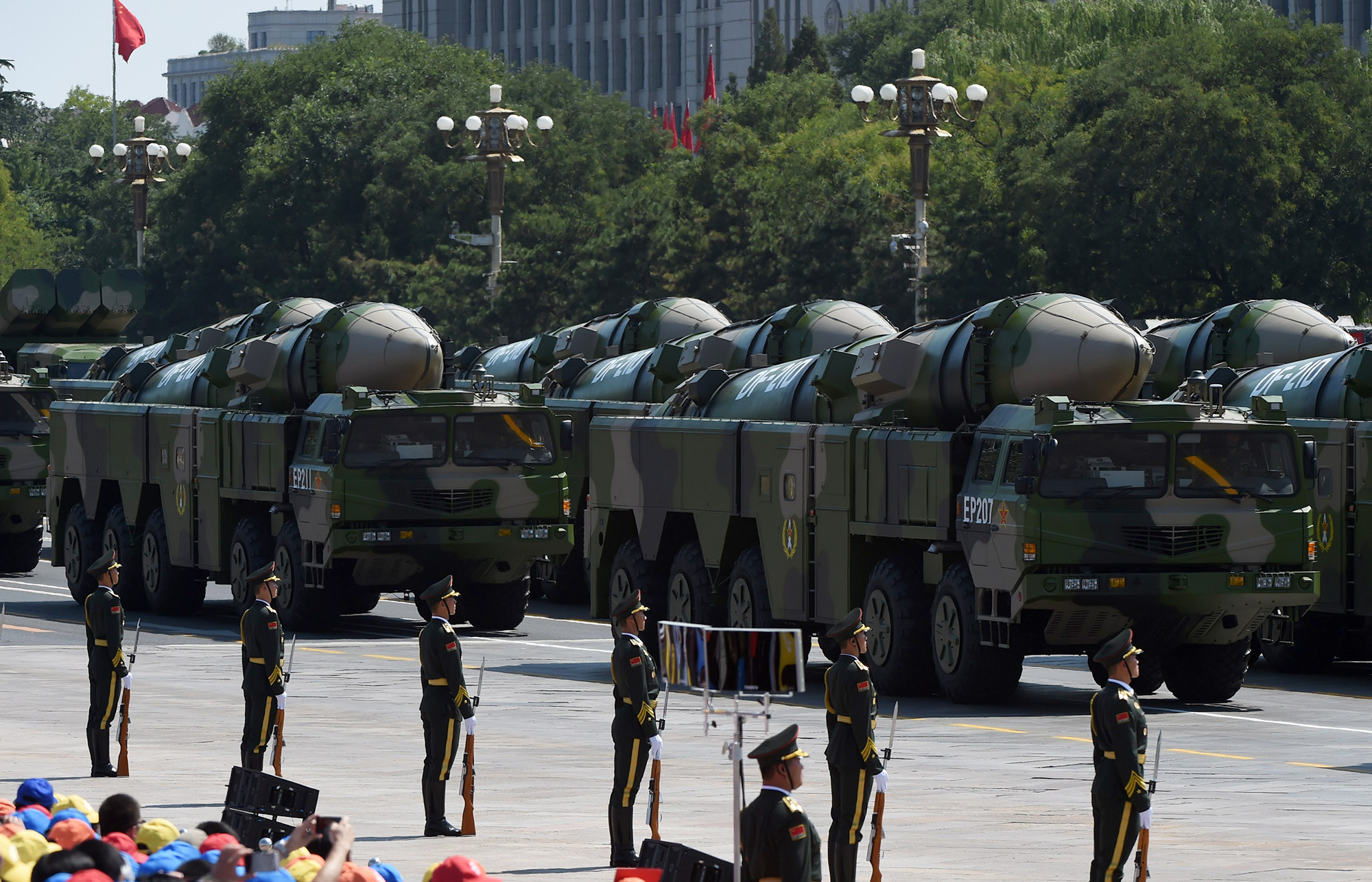 军车携带DF-21D导弹在北京天安门广场举行的一次阅兵式上展示,时间为2015年9月3日。