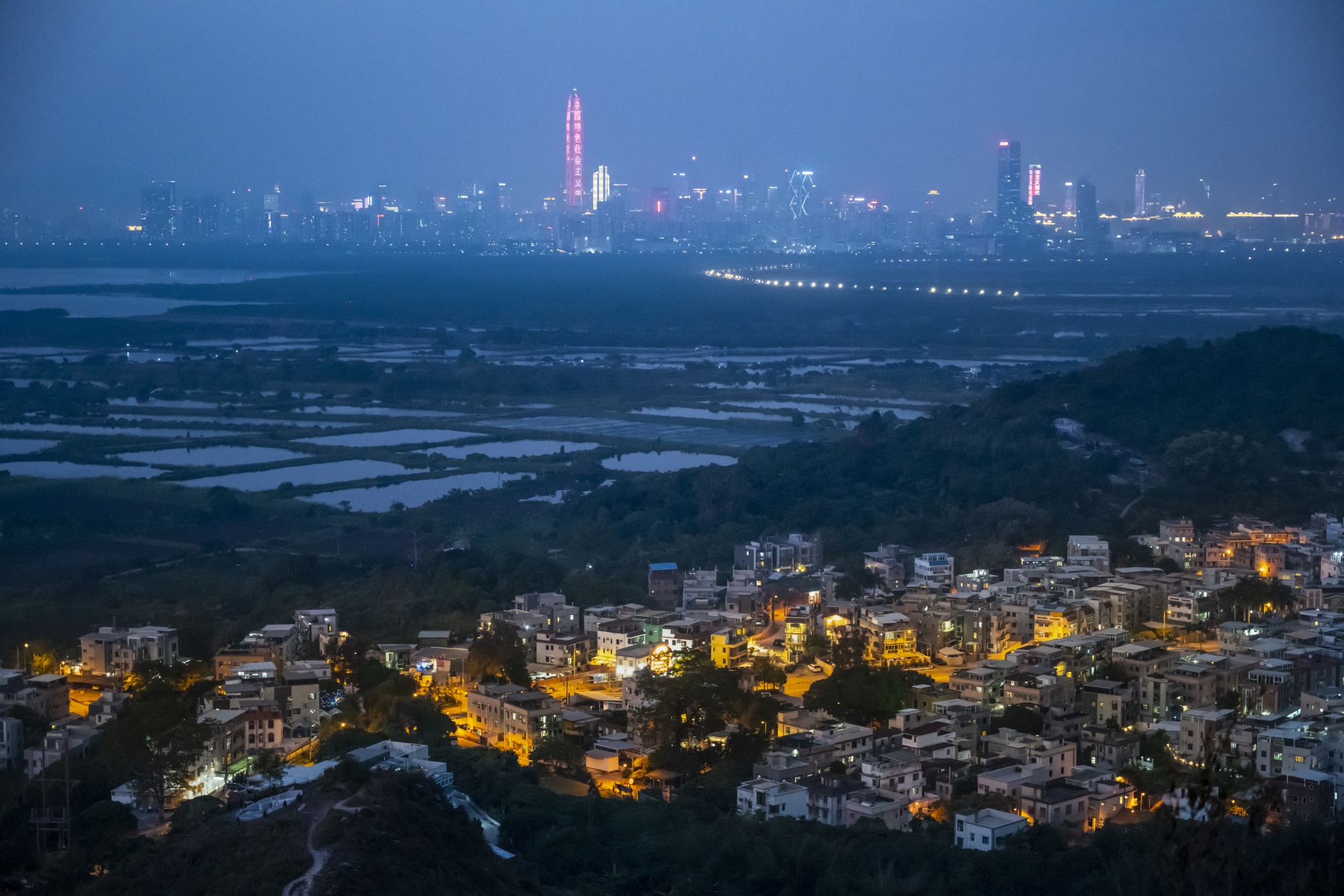 2020年12月7日,深圳的建筑物在香港的地平线上。这座科技中心的崛起加剧了人们对中国影响的担忧。摄影师:Billy H.C. Kwok/Bloomberg