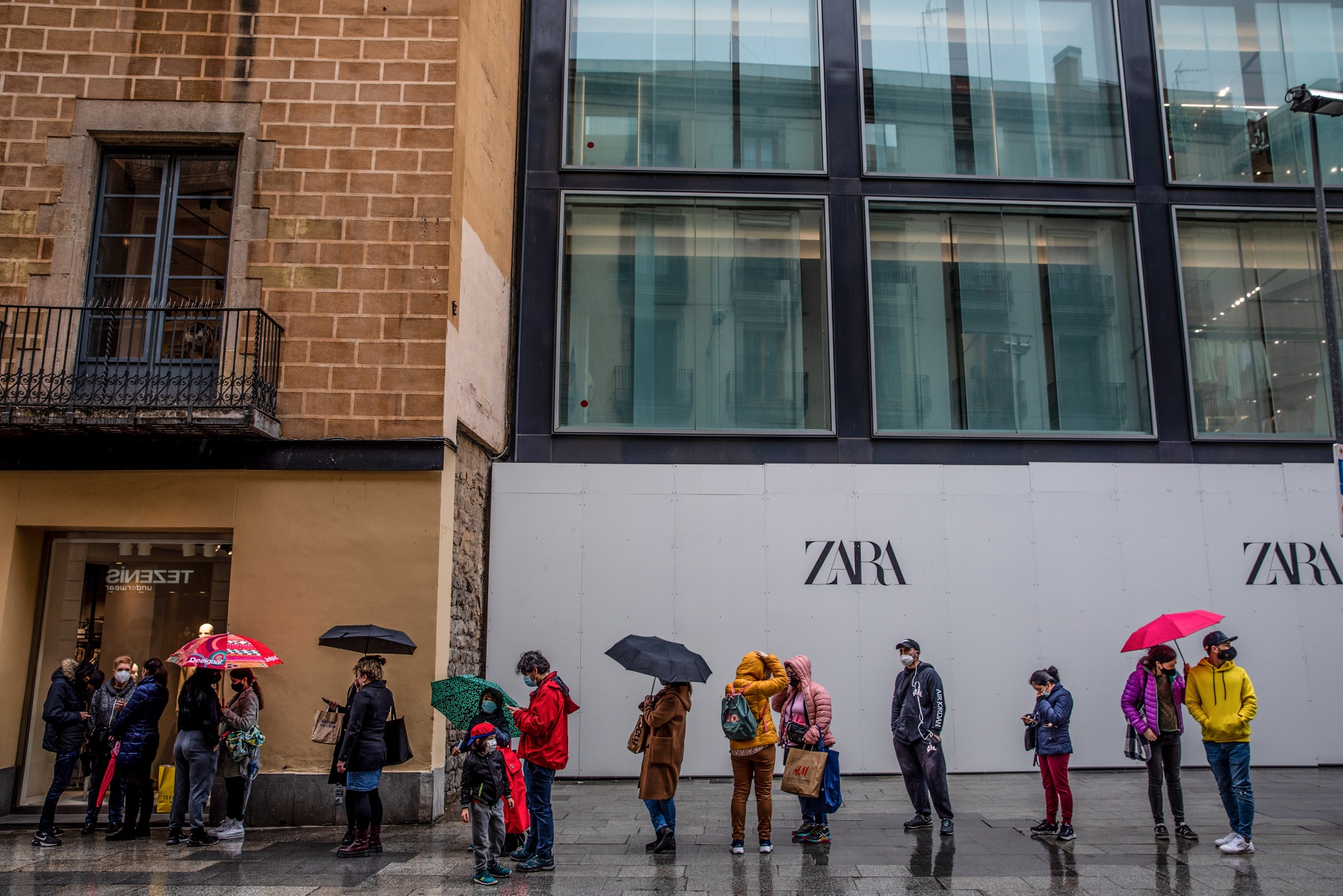 购物者们在三月初等待进入巴塞罗那的Zara服装店。