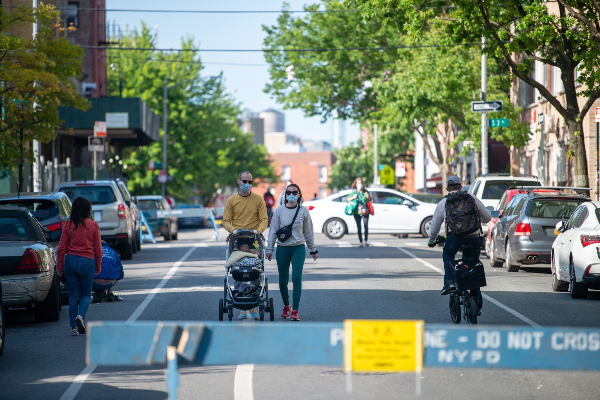 纽约市的这条街道是在大流行期间关闭车辆交通的众多街道之一,以为行人和骑自行车者提供更多空间。