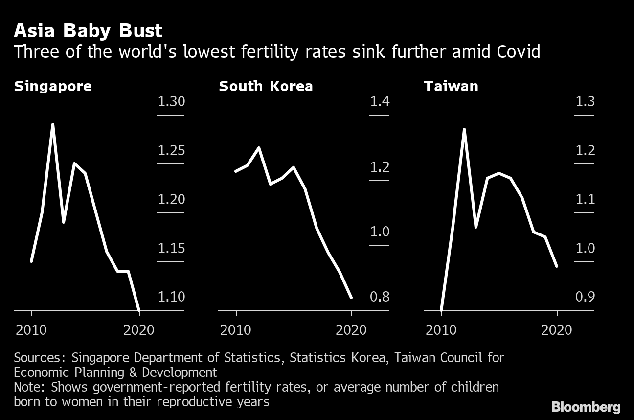 韩国,世界上出生率最低的国家,去年迎来比往年少11%的婴儿,并首次见到其人口下降。同样适用于台湾,该国一直在预测人口减少,但直到2022年才出现。日本的人口继续下降,去年创下新的人口萎缩纪录-过去三年该国失去了超过100万人口,相当于其人口的0.8%。