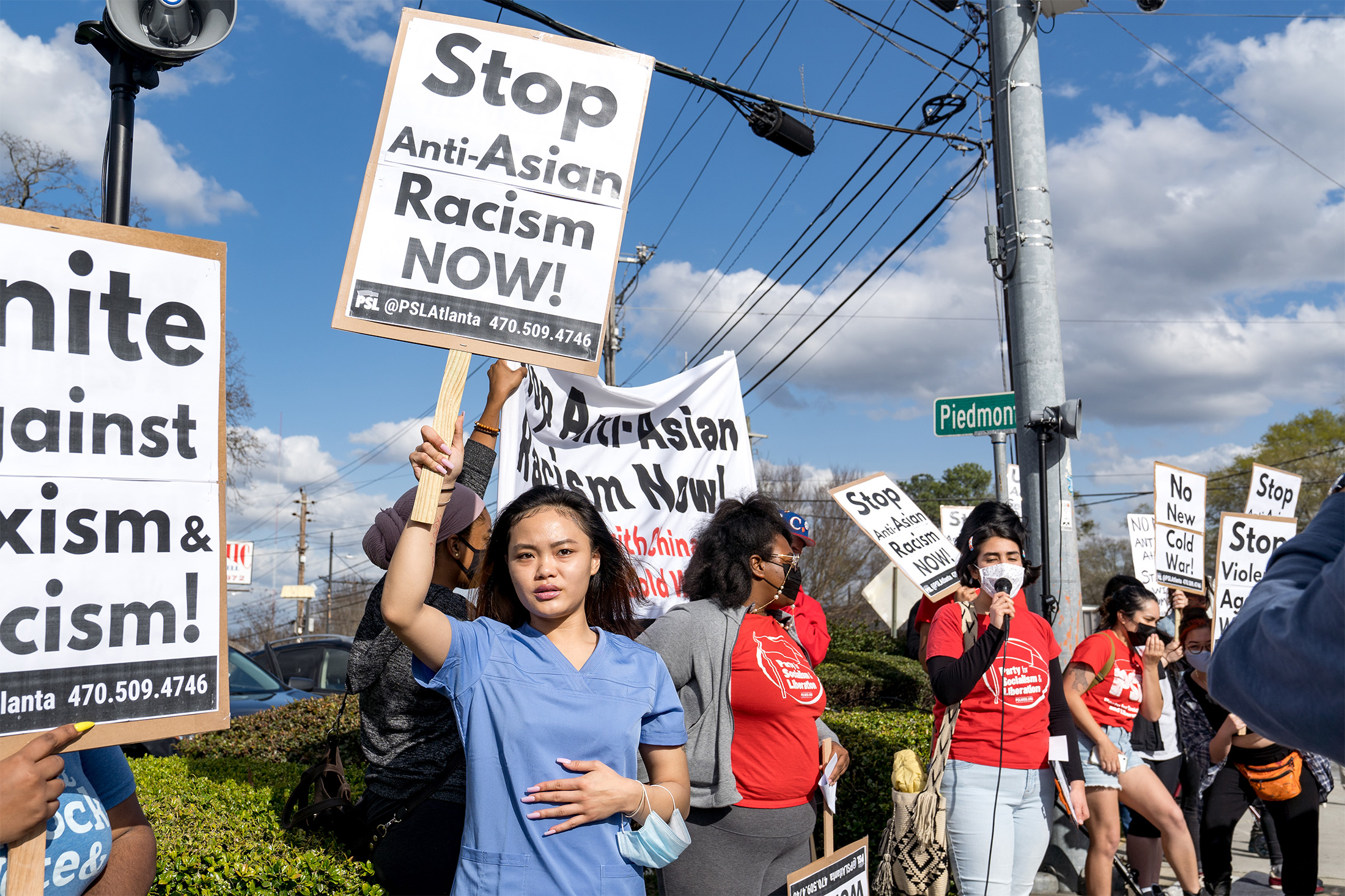 NYPD警察在亚特兰大大规模枪击案造成8人死亡后向亚裔社区分发仇恨犯罪信息。