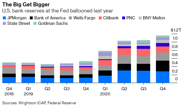 负利率在美国可能更近一步。事实上,它们可能已经存在。问题在于目前在美国银行系统中流动的现金数量,以及上周美联储决定不延长应急变更的问题,这些变更要求银行持有更多资本来抵消其杠杆。去年在美国国债市场出现剧情后,SLR变更被授予,临时允许银行将美国政府债券和联邦储备局的储备排除在其SLR比率之外,这意味着他们不必对这些头寸持有太多资本。
