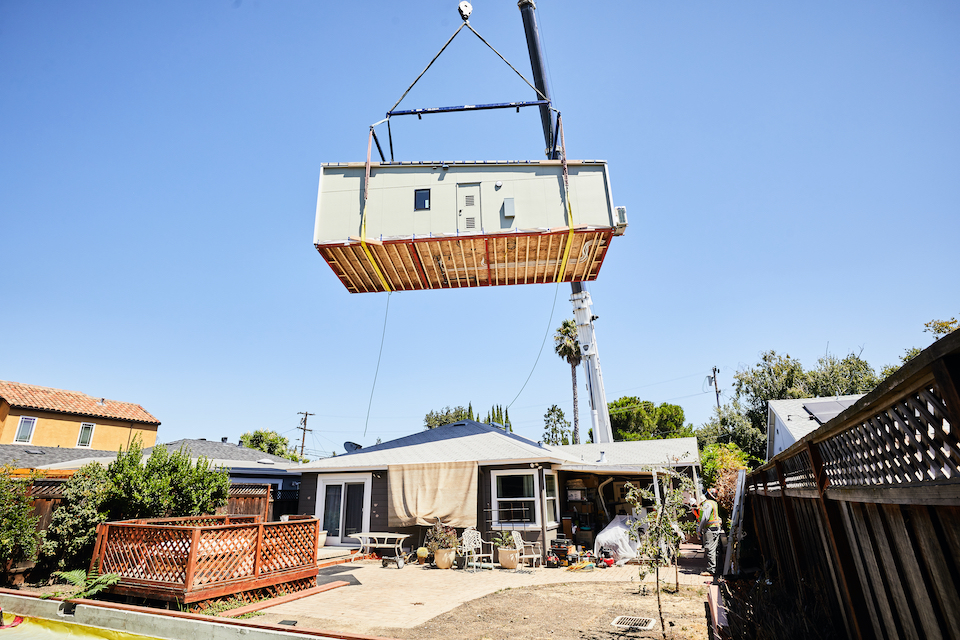 Abodu公司的后院公寓通过送货方式送达,然后在圣何塞现场组装。