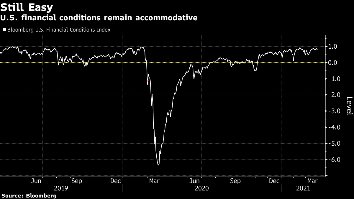 无论如何,债券市场或许开始相信主席杰罗姆·鲍威尔的承诺,他在本周的四次独立讲话中一直表示,美联储不会在经济“几乎完全复苏”之前收起工具箱。基准10年期国债收益率已从3月的1.75%回落至约1.65%。