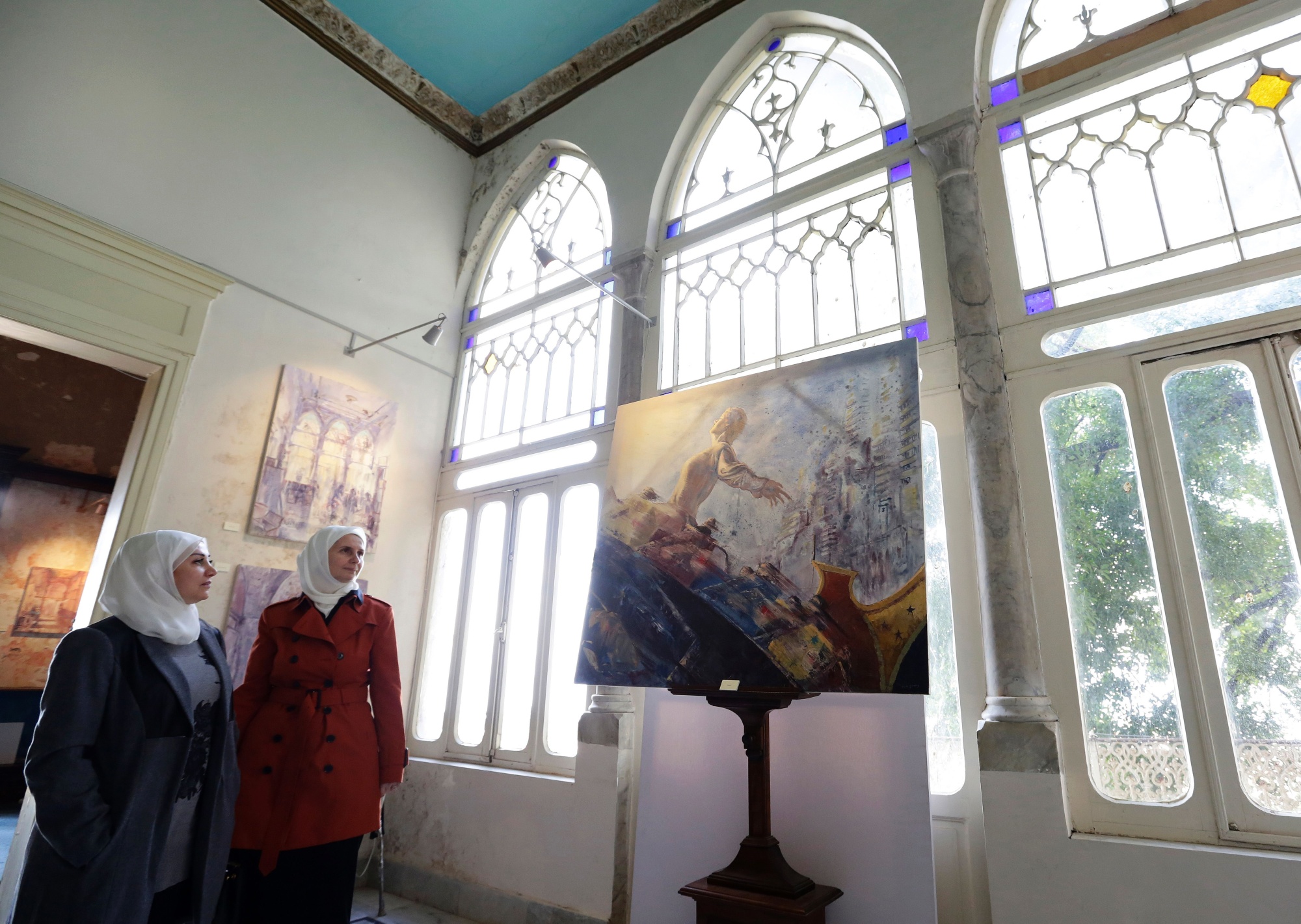 两名妇女在2014年贝鲁特地标罗斯之家的一次展览中走过英国艺术家汤姆·杨的一幅画,这座奥斯曼别墅俯瞰着地中海。摄影师:安瓦尔·阿姆罗/法新社不仅是房屋外观向外看,融合了地中海周围各地的传统。家具也反映了居住者的全球网络,内部成为瑞士钟表和美国留声机、法国餐具和低矮传统长沙发的展示场所。然而,这并不意味着文化影响是“单向的”,阿布·霍代布说。这也揭示了一个痴迷东方主义的欧洲如何开始将中东商品的版本出口回灵感来源地。
