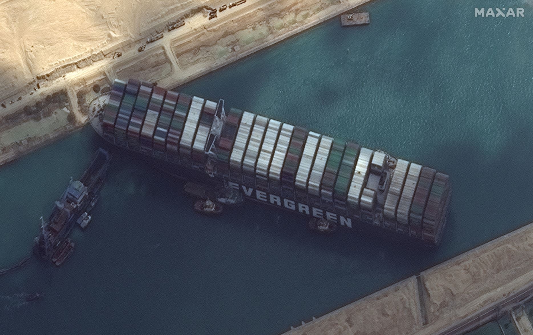 挖掘机于3月25日清理了被困船头周围的区域。长赐号来源:苏伊士运河管理局### 本周新经济动态