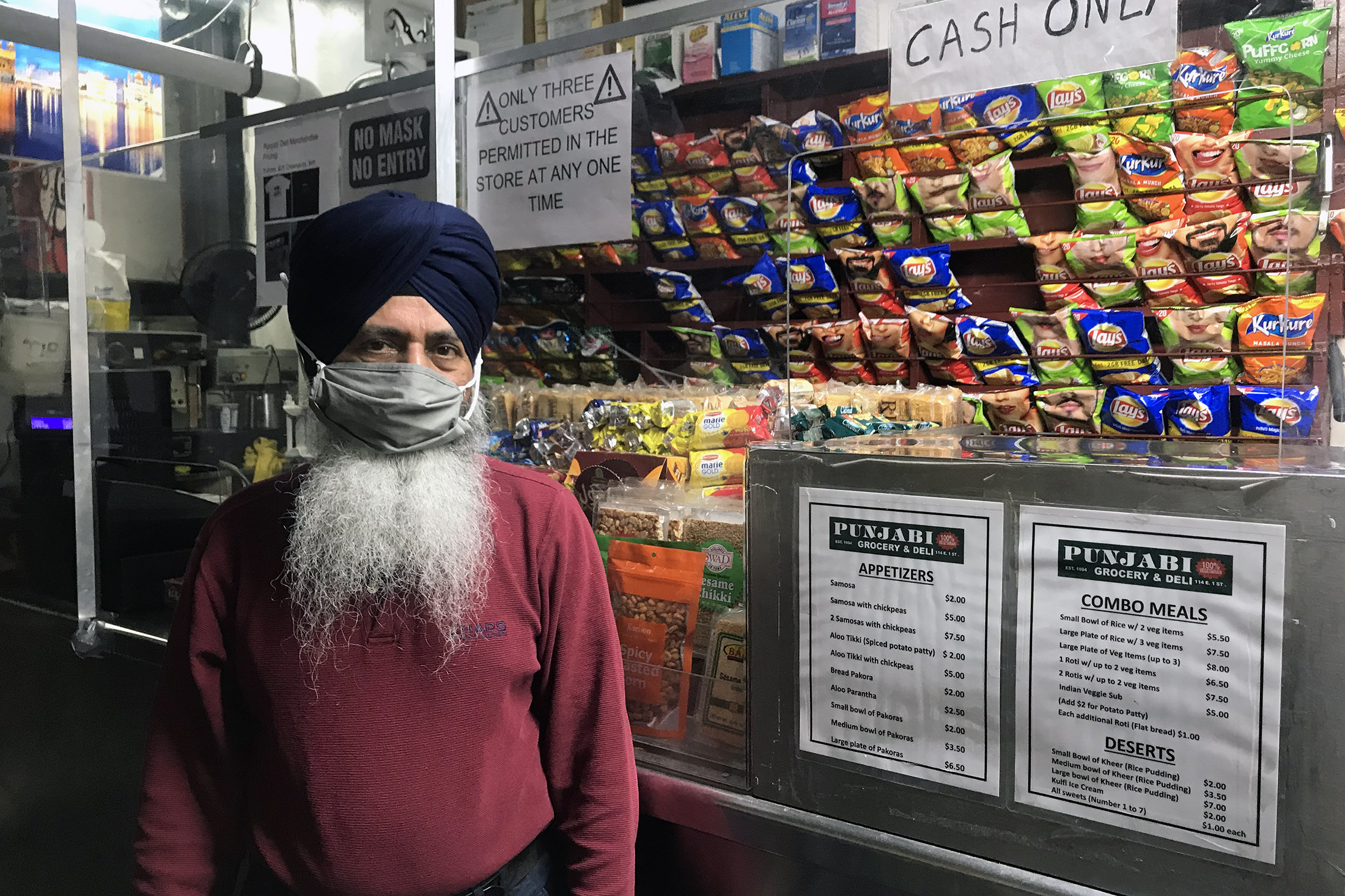 库尔温德尔·辛格(Kulwinder Singh)在他位于东村的店铺旁,旁遮普熟食店。摄影师:Yueqi Yang/Bloomberg旁遮普熟食店坐落在曼哈顿通常繁华的东村地区,曾经是出租车司机中受欢迎的地方,他们寻找那里的7.50美元的印度素食拼盘。那是疫情前,店主库尔温德尔·辛格(64岁)表示,他尚未看到城市的复苏转化为实质性的业务增长。
