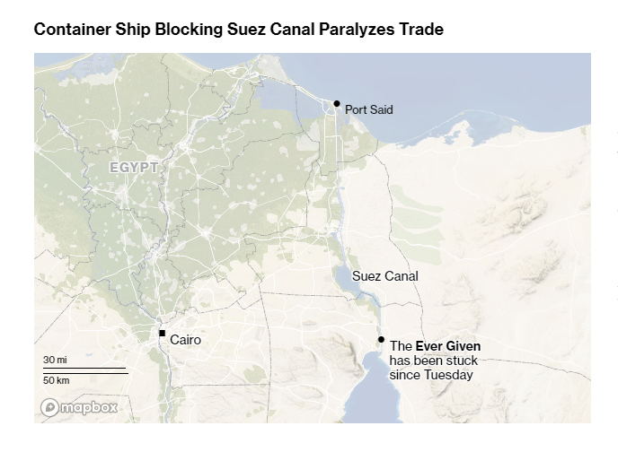 供应链最新消息:解开苏伊士船只纠结可能需要数月时间 - 彭博社
