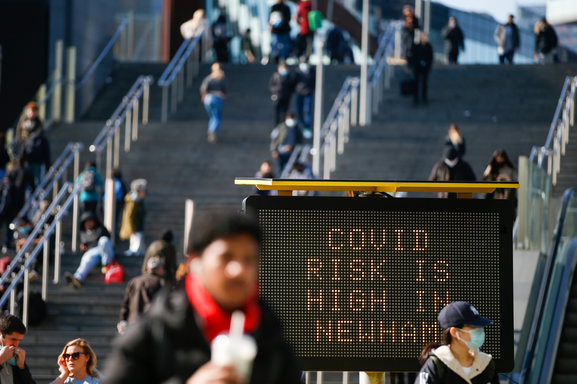 伦敦新汉姆区的一块新冠风险标志摄影师:Hollie Adams/Bloomberg在宗教场所提供新冠疫苗注射,这些场所在许多社区中起着核心作用,并且靠近人们的家,这是提高信心的一部分努力。像其他区一样,新汉姆在教堂、清真寺、锡克教寺庙和印度教寺庙等地开设了临时接种中心。