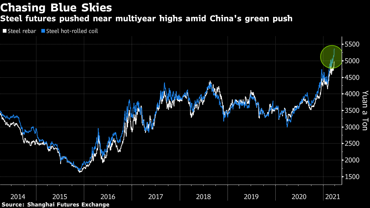 随着中国承诺在2060年前实现碳中和,这些措施是有道理的。钢铁占该国排放量的15%,是任何制造业部门中最大的。事实上,当局已经开始惩罚违反生产限制的钢厂。