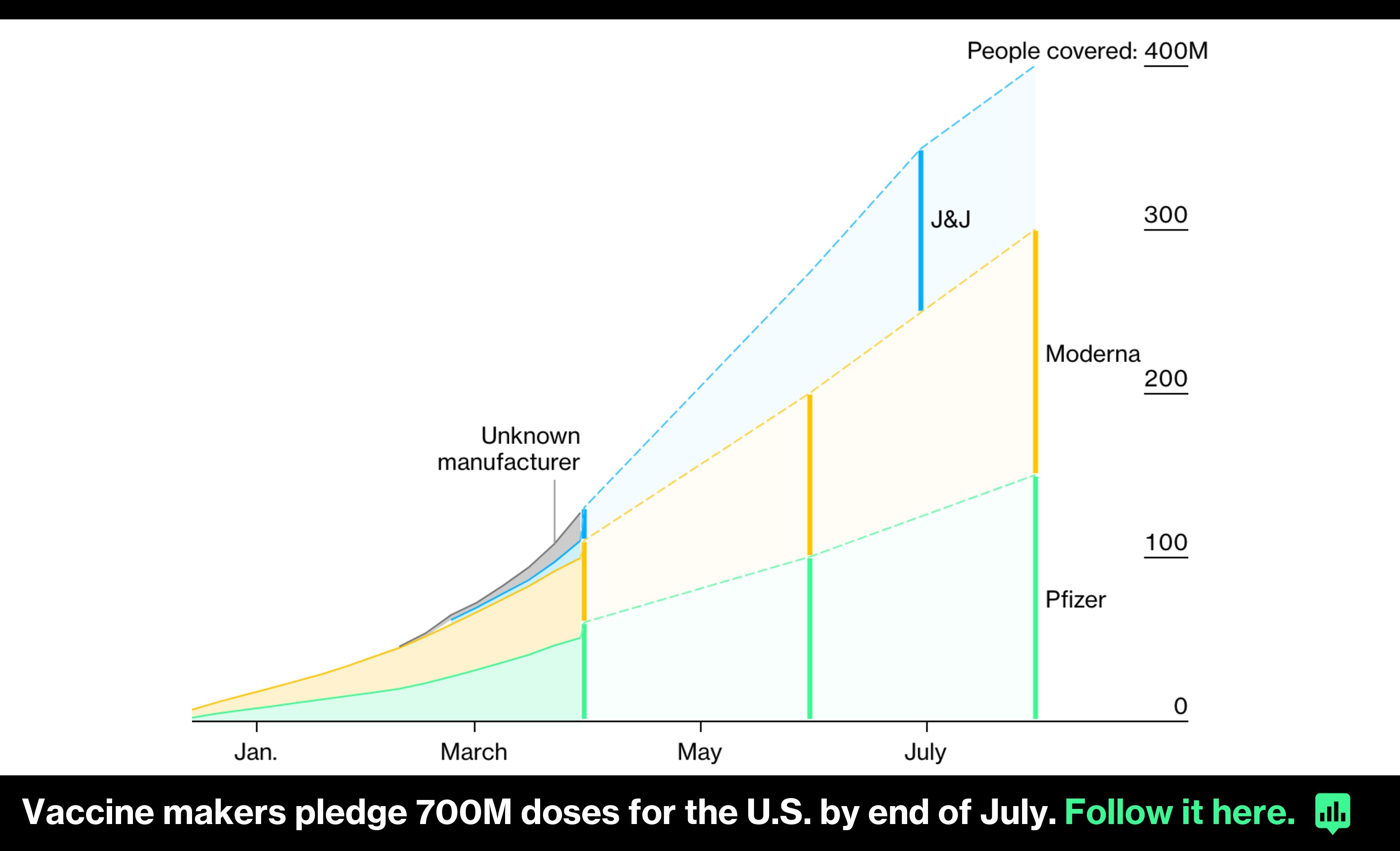 我们的追踪器显示他们正在达到这些目标(尽管有J&J的制造问题)。辉瑞、莫德纳和强生表示他们将在3月底前交付总共2.4亿剂量。事实正是如此。