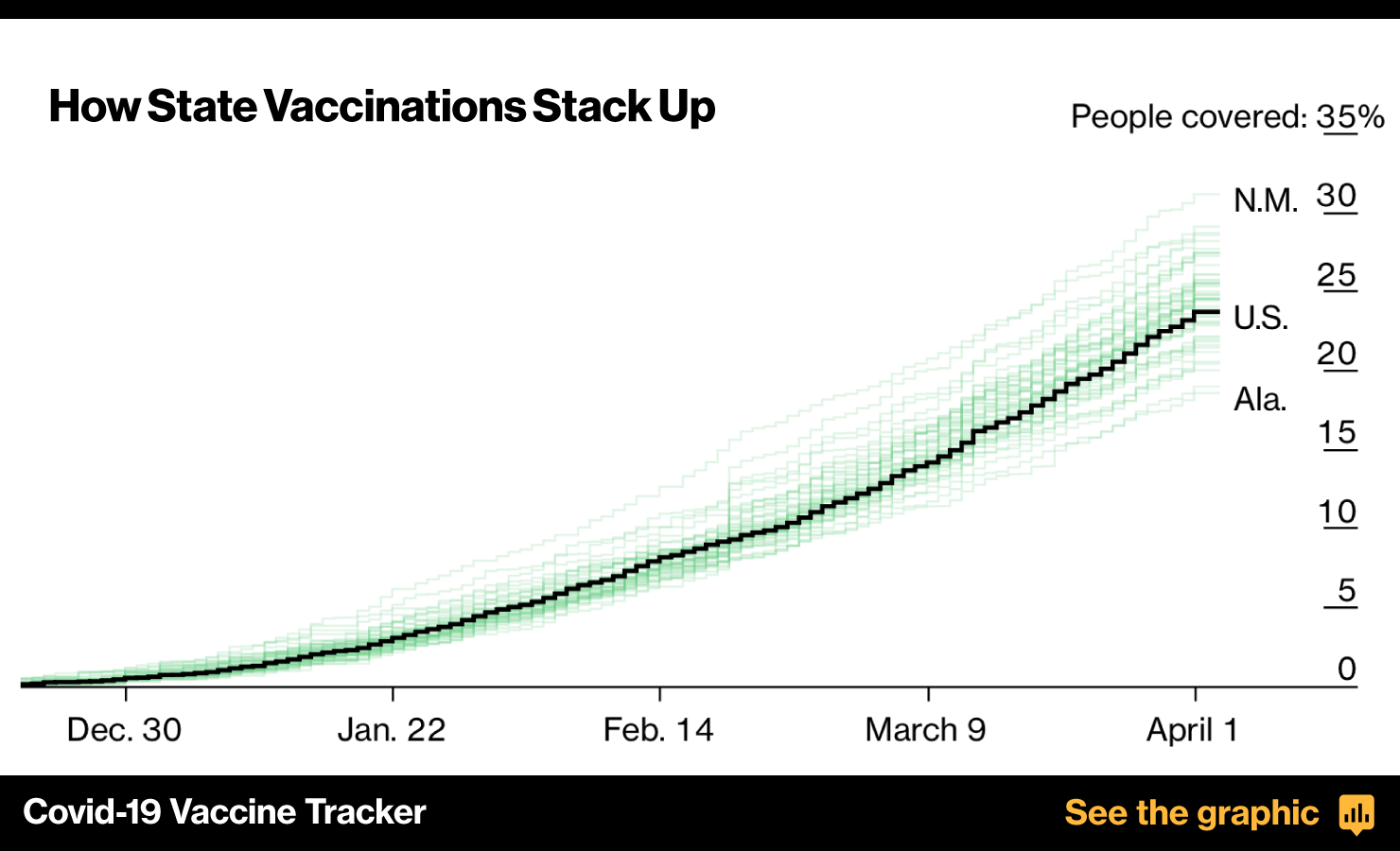 截至本周,在美国,疫苗制造商已交付2.43亿剂疫苗,根据Bloomberg疫苗追踪器。美国约有1亿人至少接种了一剂疫苗。