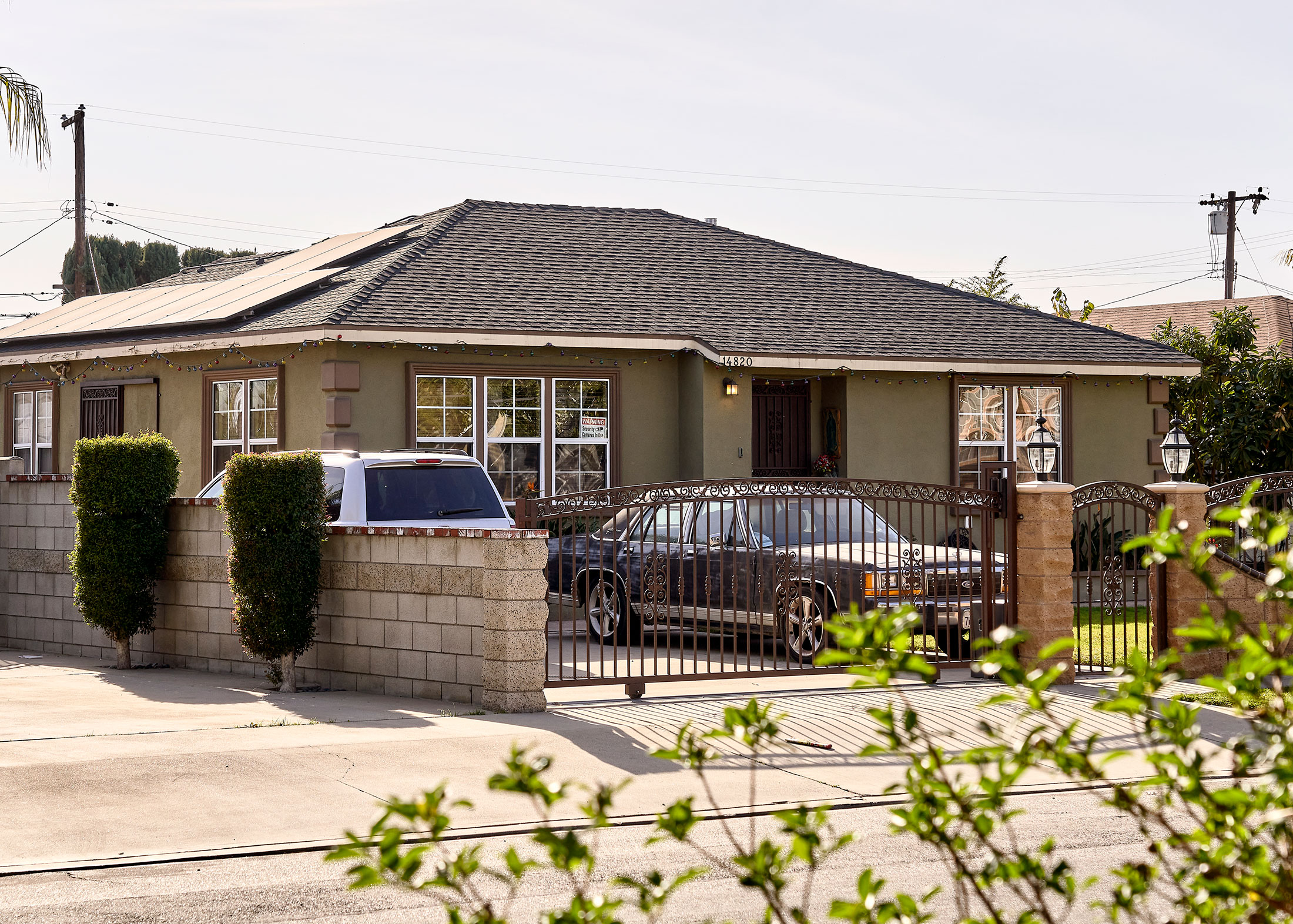 **Tamayo 的家。**Tamayo 只会说西班牙语,她请女儿 Garduno 帮忙调查。Garduno 在家里找到了纸质表格,上面有她母亲的签名,授权承包商为她创建一个带有密码 Edison123 的电子邮件地址,这是她的电力公用事业公司的参考。密码不再有效,但最终 Garduno 发现该地址曾用于电子签署与 Renovate America 的 PACE 融资协议,使她母亲有义务在10年内偿还超过40,000美元。摄影师:Philip Cheung 摄于彭博环保
