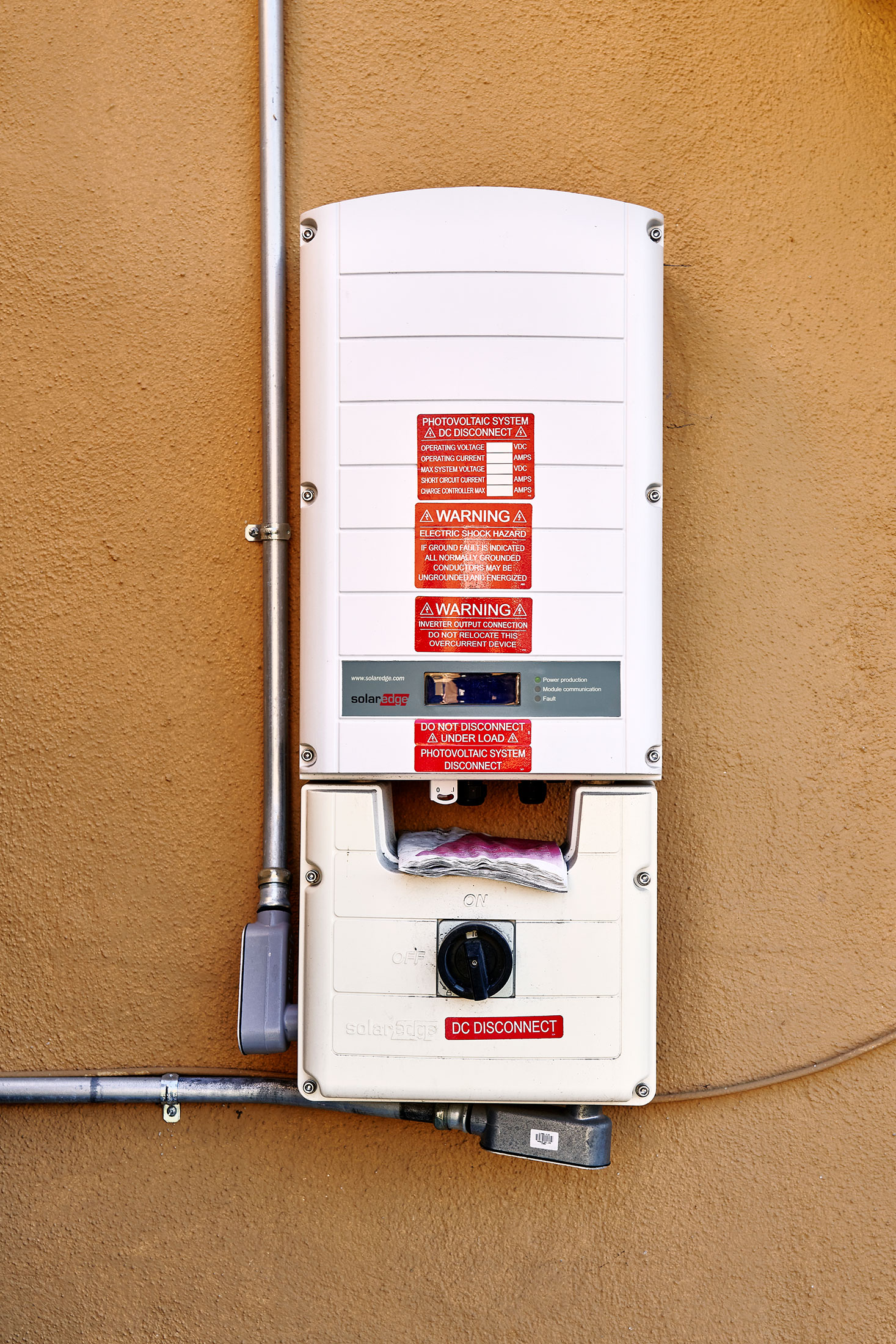 **逆变器,光伏系统的一部分,安装在鲍恩(Bowen)家的一侧。**摄影师:Philip Cheung(彭博绿色)