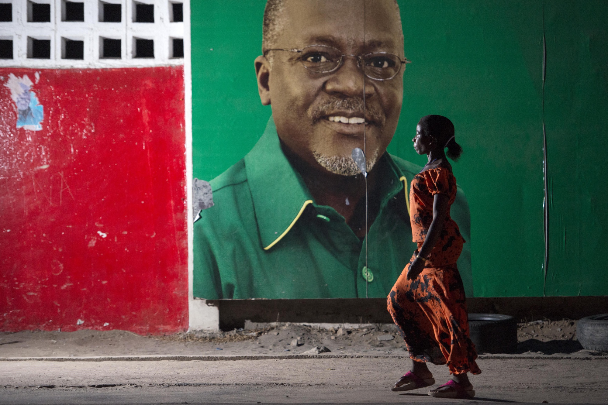 上个月去世的坦桑尼亚总统约翰·马古富利的选举广告牌。