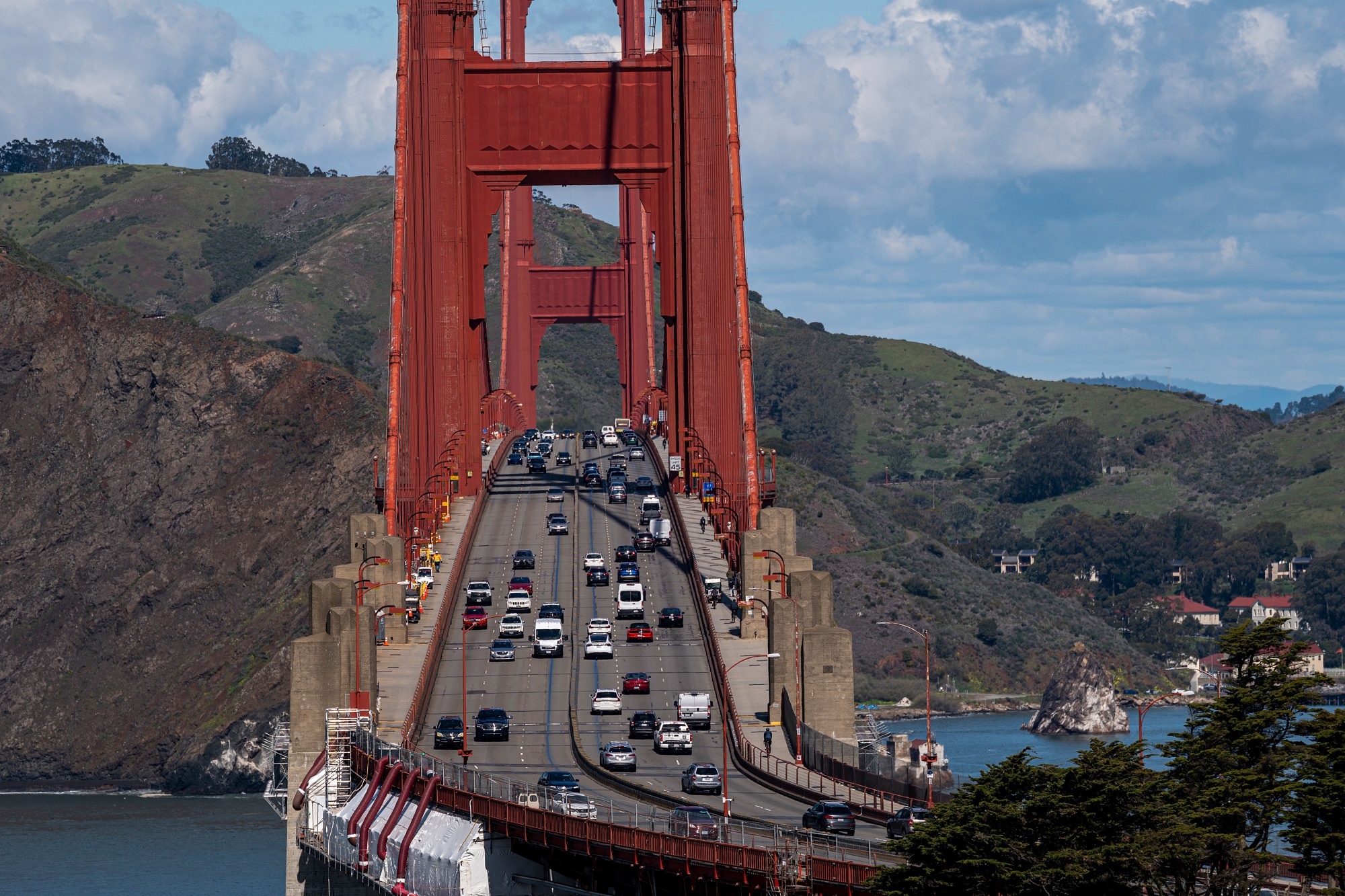 旧金山,加利福尼亚州,3月11日,金门大桥上的南行车流。