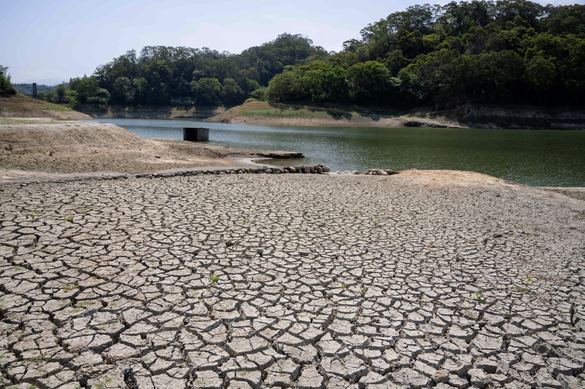 新竹,台湾,星期三,第二保善水库的干涸水库床。该国经济发展的未来取决于它是否能承受电子行业的碳排放和电力消耗。摄影师:Billy H.C. Kwok/Bloomberg