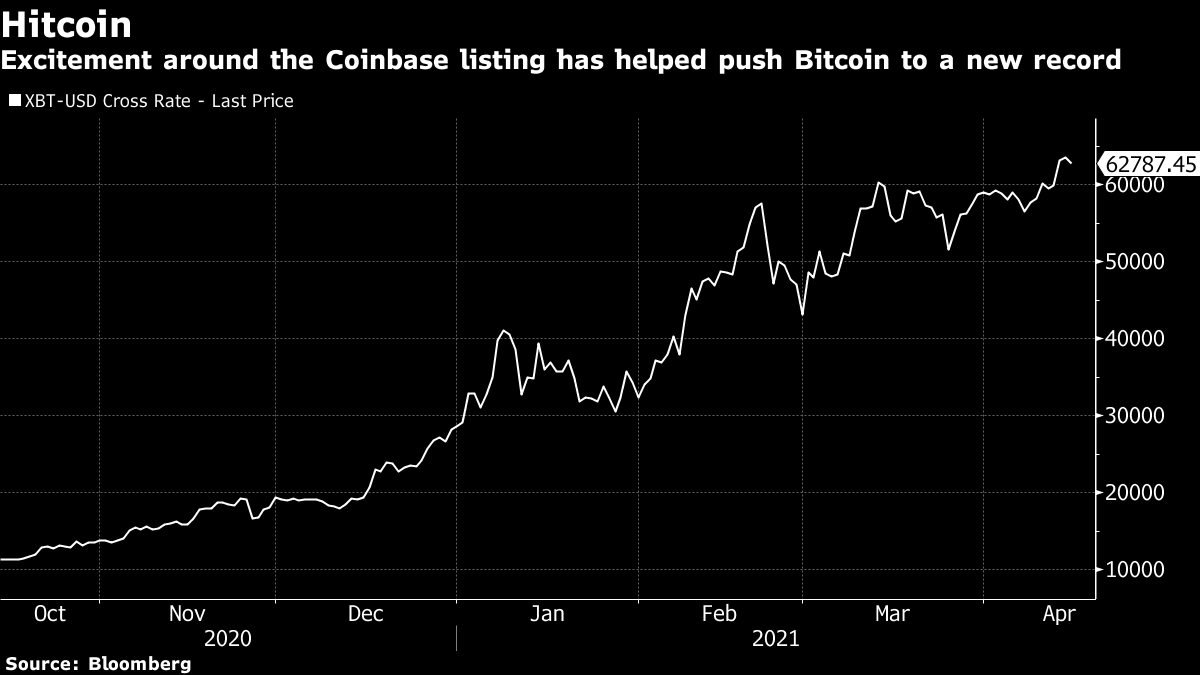 美股收于历史高位之后,亚洲股市看起来可能会出现回落,因为Coinbase和科技股的下跌掩盖了强劲的银行业绩。香港和澳大利亚的期货下跌,日本则保持稳定。美国交易中,国债下滑,美元连续第三个交易日下跌。比特币触及了64,870美元的纪录,然后有所回落。由于美国原油库存减少,支撑了全球需求恢复的希望,油价跃升至每桶63美元以上。