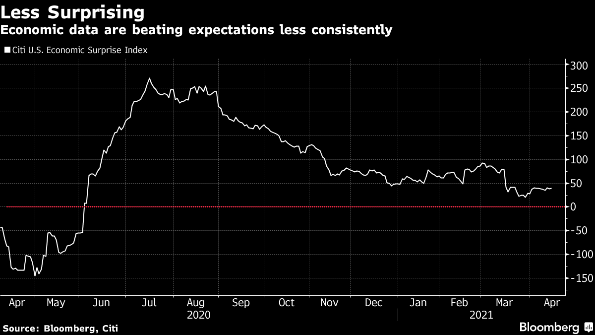 目前没有明显的理由表明经济数据会变得更糟,但随着对复苏的预期已经相当高,很难看到它们如何能够保持令人愉快的惊喜。