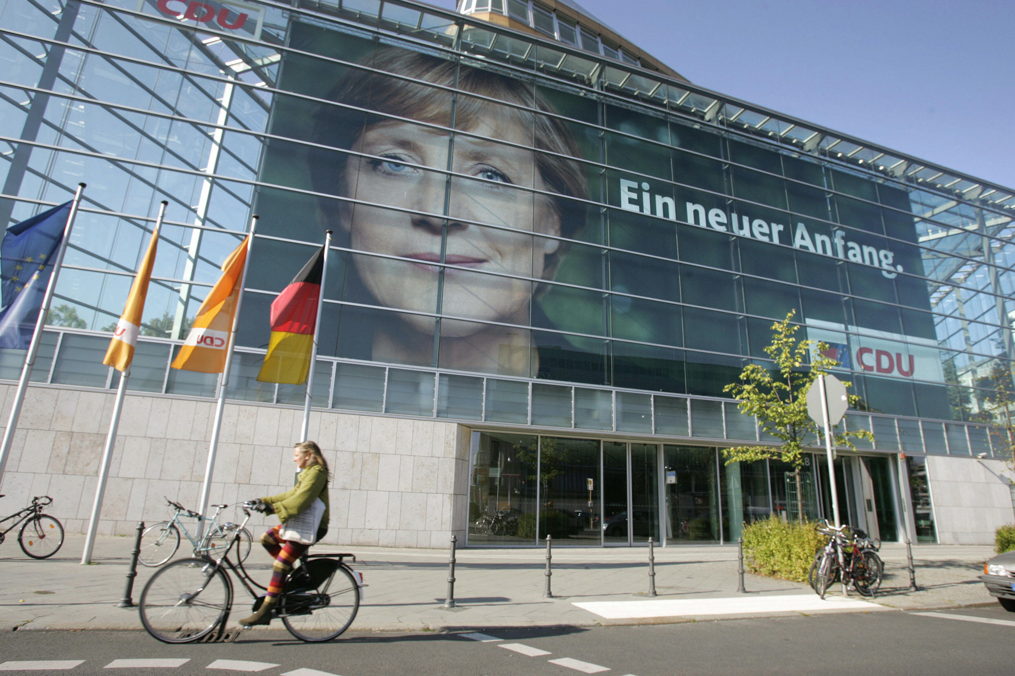 2005年10月的柏林基民盟总部。安格拉·默克尔在随后的一个月成为了德国第一位女总理。摄影师:约翰·麦克道尔/法新社/盖蒂图片社查看我们在彭博政治网页上的所有重要新闻 这里*,告诉我们我们做得如何或者我们漏掉了什么,发送邮件至* [email protected]*。*