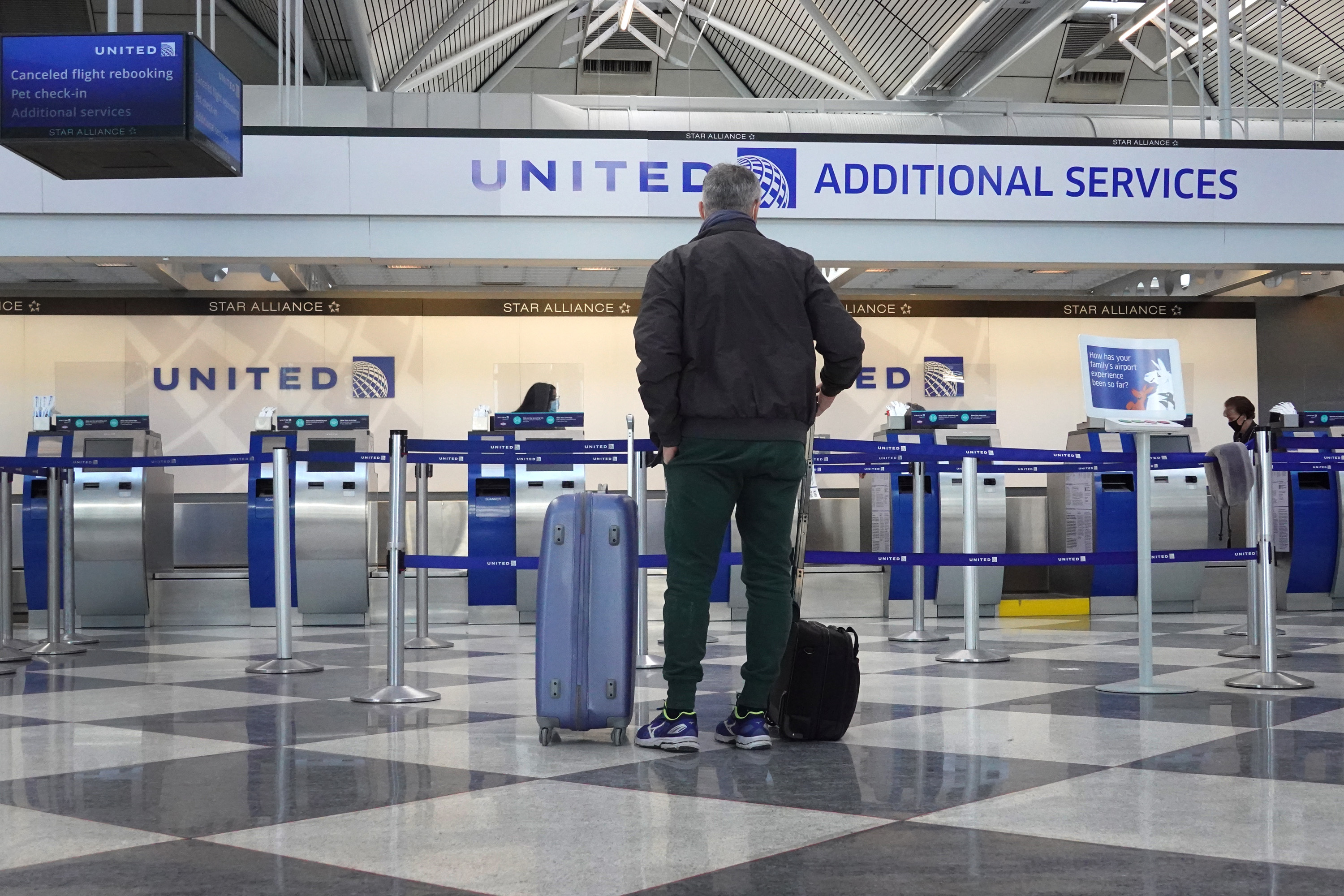 一名乘客在芝加哥奥黑尔国际机场于2月5日乘坐美国联合航空公司的航班抵达。