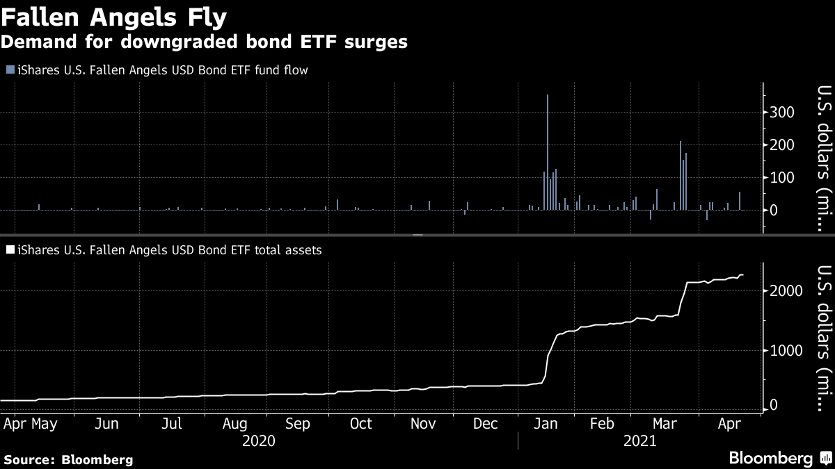 这些风险更高的资产负债表似乎对杠杆没有失去兴趣。据Alex Wittenberg报道,周四,评级垃圾债券的美国公司创下了四月份发行债券数量最多的纪录,接近400亿美元。这是第三个连续的标志性月份,今年的发行量已接近1900亿美元。这占了2020年全年总额的44%,而2020年是垃圾债券发行史上最大的一年。