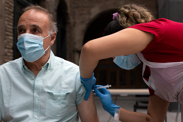 一名卫生工作者给圣地亚哥的一名男子注射了中国科兴新冠疫苗。