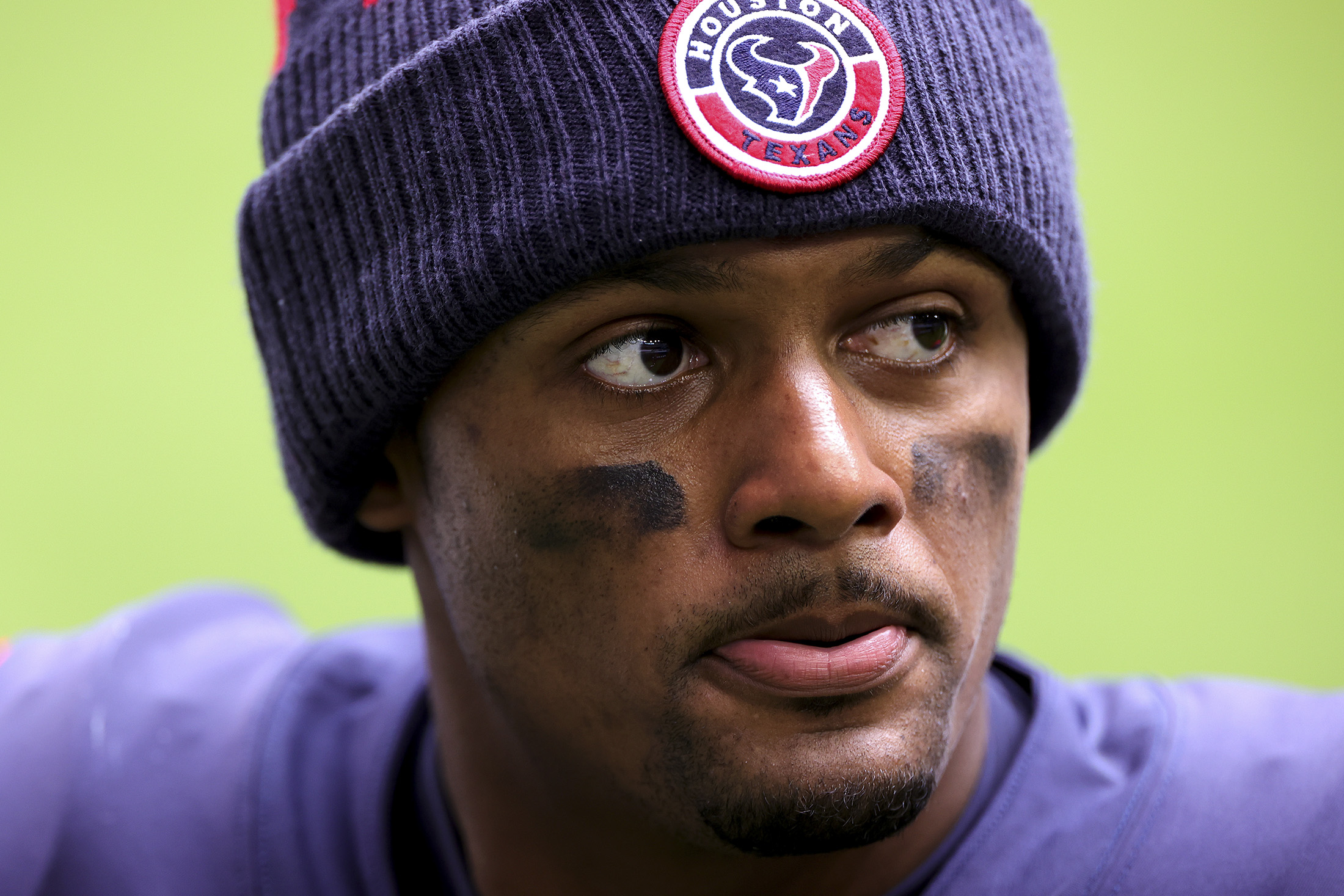 休斯顿,德克萨斯州 - 2020年12月27日:休斯顿德州人队的四分卫德肖恩·沃森(Deshaun Watson)在2020年12月27日在休斯顿NRG体育场对阵辛辛那提孟菲斯队比赛中注视比赛。 (卡门·曼达托/盖蒂图片社摄)摄影师:卡门·曼达托/盖蒂图片社北美自十多名女性指控休斯顿德州人队四分卫德肖恩·沃森性侵以来的五周里,体育媒体一直保持沉默。