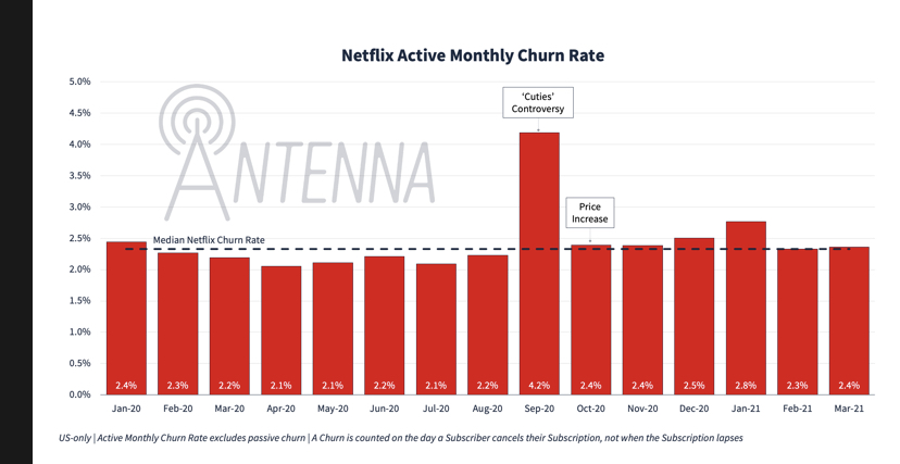 Netflix否认了另外两个潜在问题:竞争加剧和最近的价格上涨。然而,正如我们上周报道的那样,它正在失去一些关注者。Antenna最近的一份报告显示,在最近的一次价格上涨后,顾客以更高的速度取消了Netflix。但这一事件被“Cuties”争议所掩盖。