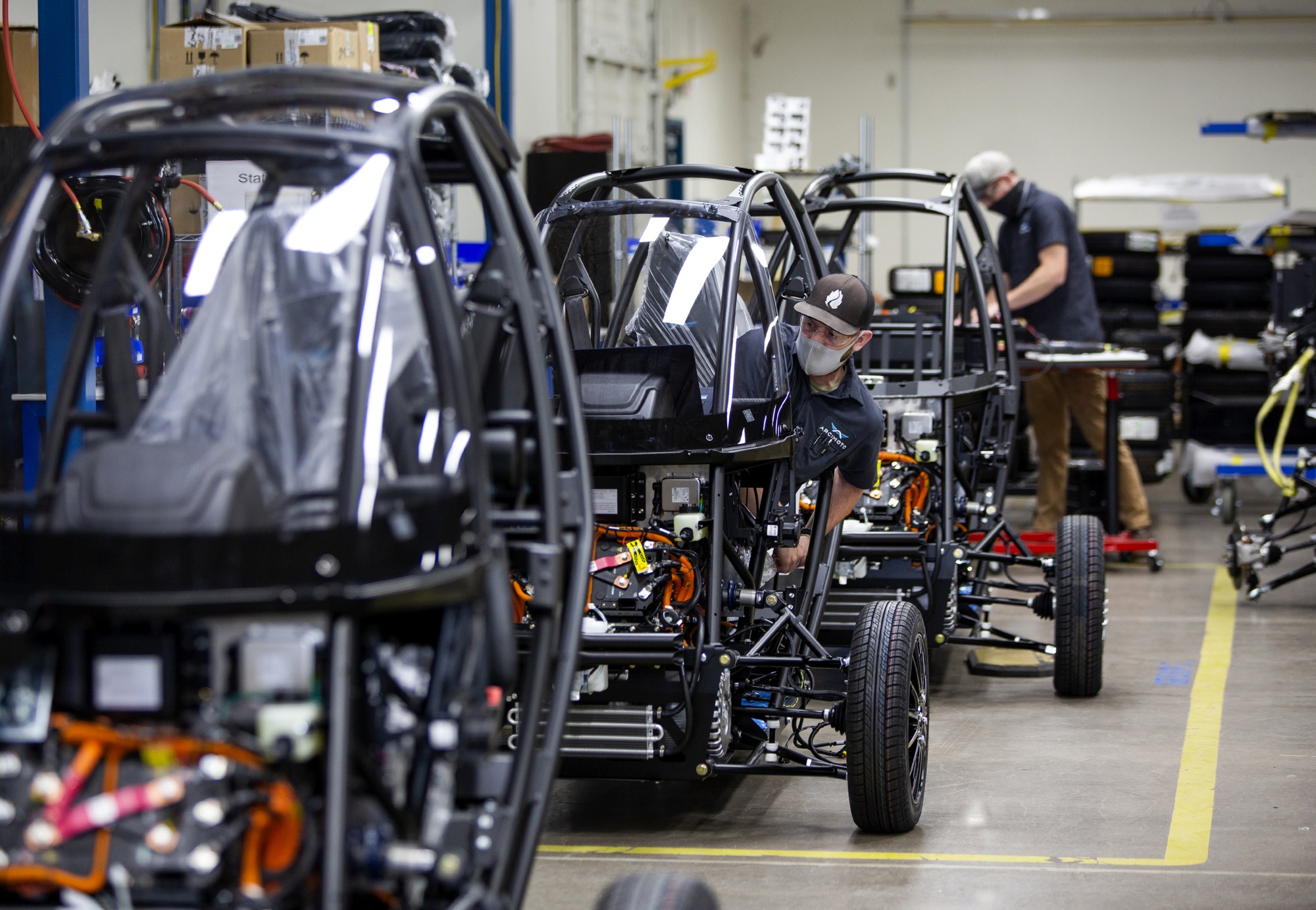 俄勒冈州尤金市Arcimoto制造工厂的一名工人。