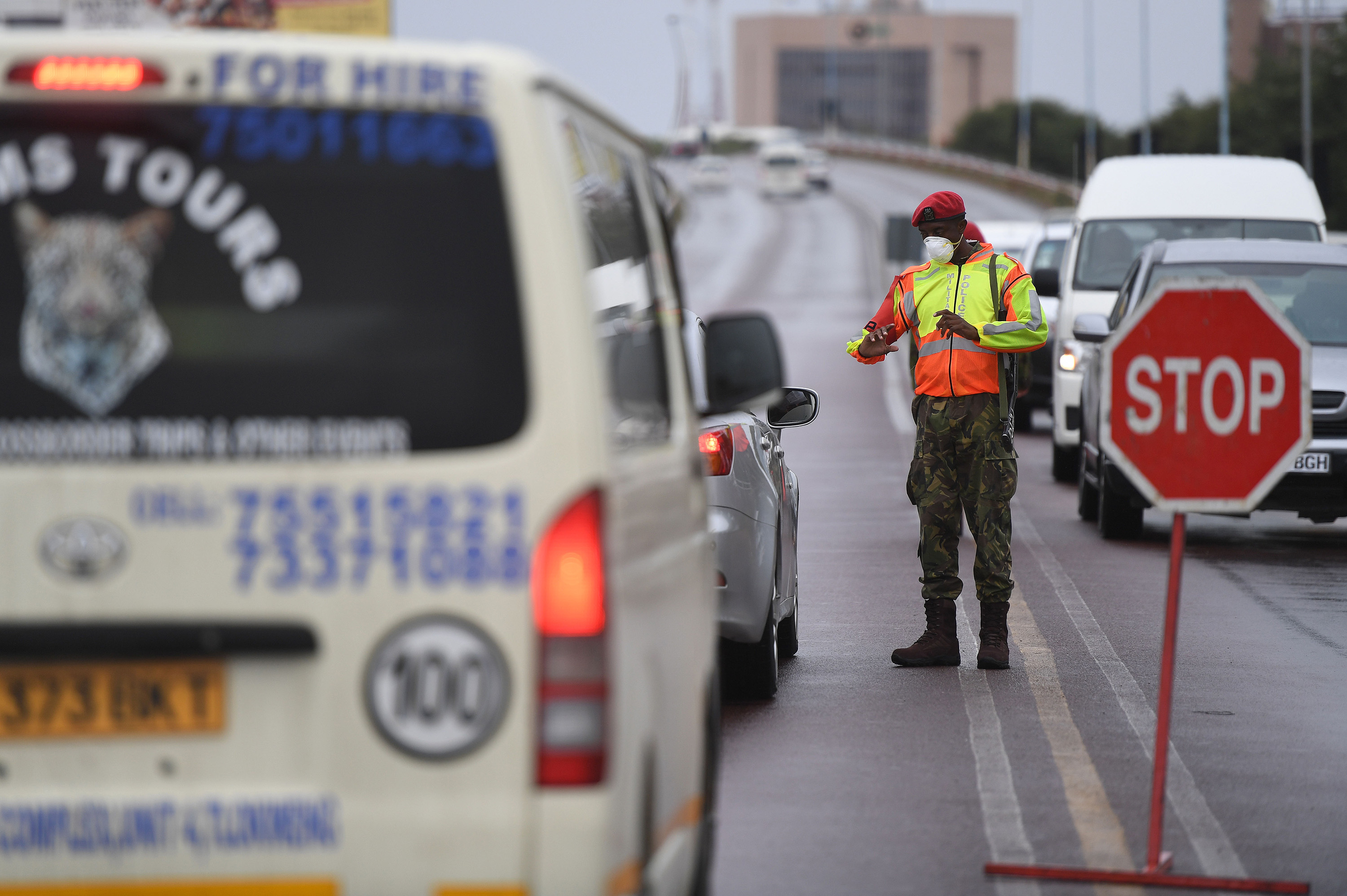 在博茨瓦纳哈博罗内病毒紧急状态期间的检查点。