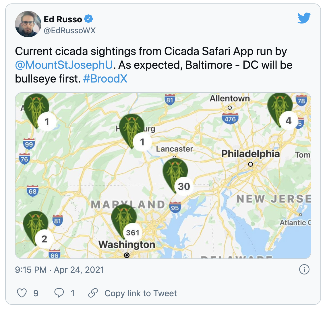 正当美国接近抗击Covid-19的转折点时,东海岸和中西部的土壤温度将达到华氏64度。这意味着,正当一些人最终感到足够安全离开家时,已经在地下17年的数十亿只X团蝉也会这样做。事实上,一些人已经在这里和那里记录到了一些发现,在众包应用Cicada Safari上。