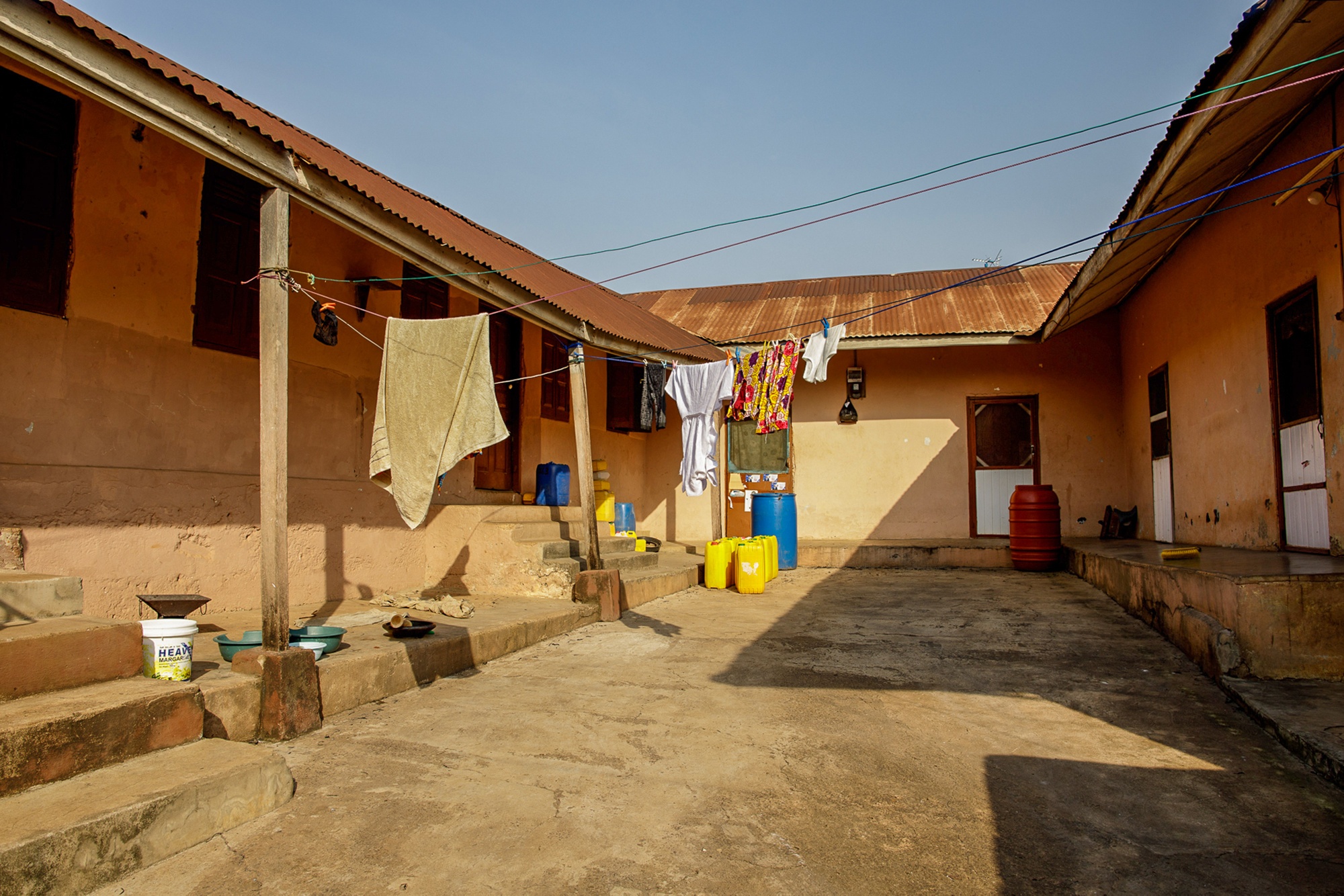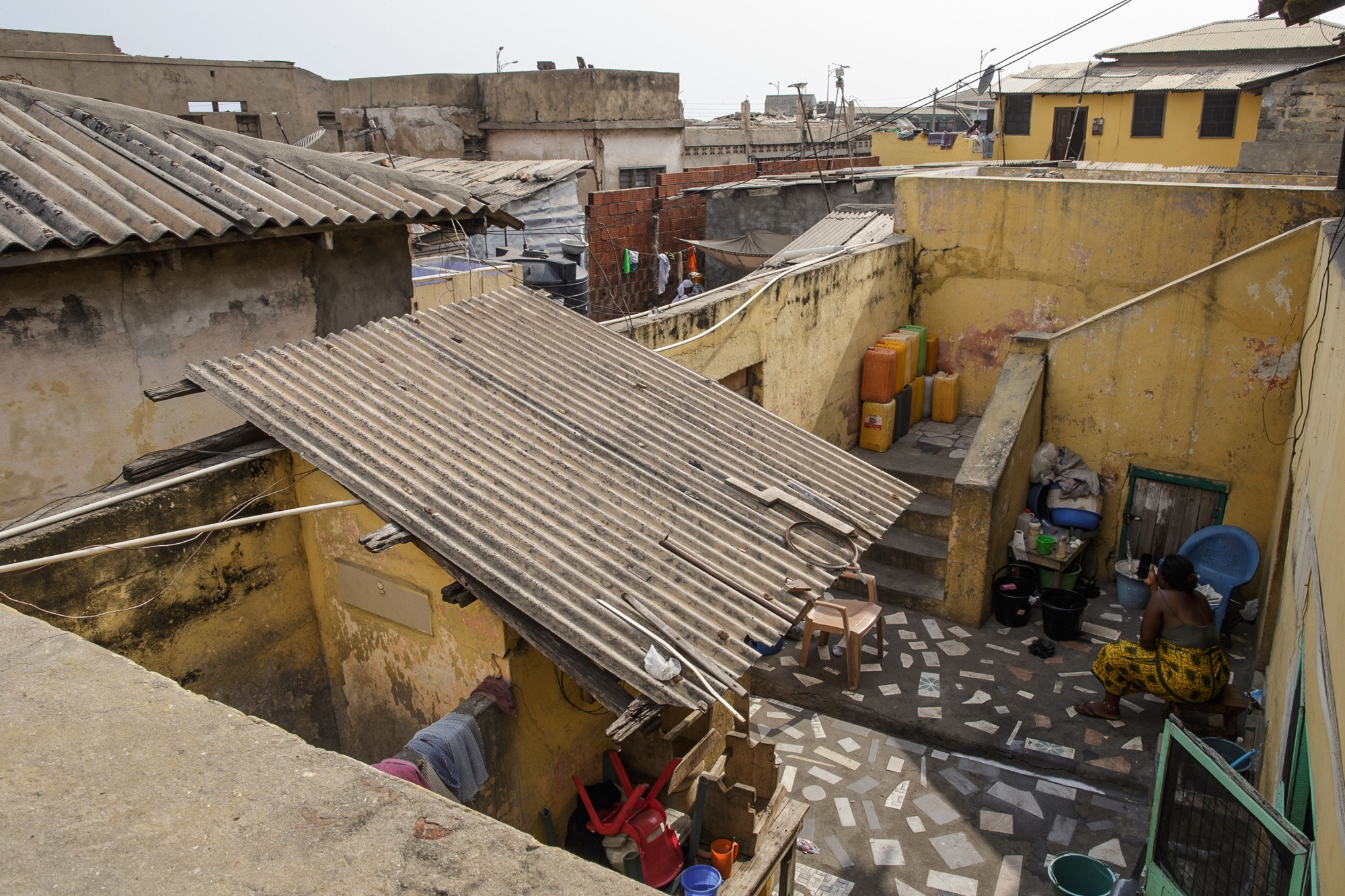 这些小型房屋群——围绕在街道后面的阴凉庭院周围——是现代阿克拉的基石**,**汇集了从乡村迁移而来的大家庭。复合式住宅提供了紧密的亲属关系和半私密空间,即使在大城市的中心地带也是如此。