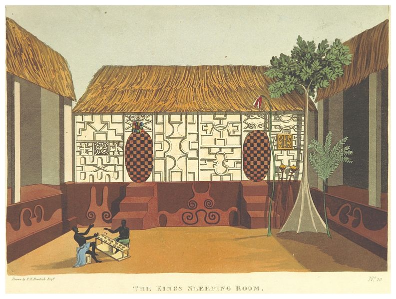 这幅1819年的英国描绘了阿散蒂国王宫在库马西的情景,与加纳后来的庭院式住宅具有相同的结构,尽管规模更为宏伟。来源:英国图书馆城市生活将这种模式转变为了全新的形式。随着欧洲殖民地化的影响日益增强,这种类型开始借鉴西式建筑风格。庭院式住宅开始在庭院周围增加两层楼房,而不仅仅是平房,而且面向街道的翼部分可能采用伪欧洲风格的特色,例如从木质转变为石质。逐渐地,这种形式开始采用更具城市化的形式,一些庭院式住宅开始融入商铺。